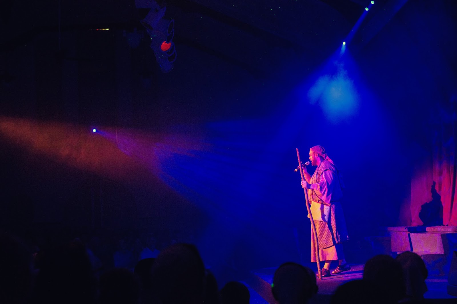 Our pastor sharing the plan of salvation-the true REASON for the season and the purpose behind the entire production.
