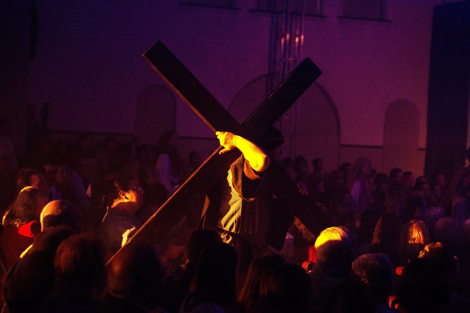 The crucifixion scene. (that’s Dad there in the middle, leading the mob)