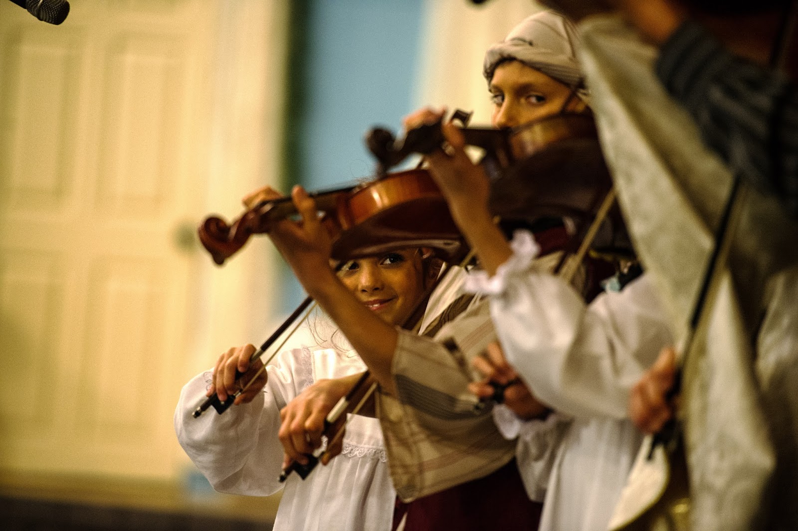 Our five violinists, playing “God Rest Ye Merry Gentlemen” for the offertory,