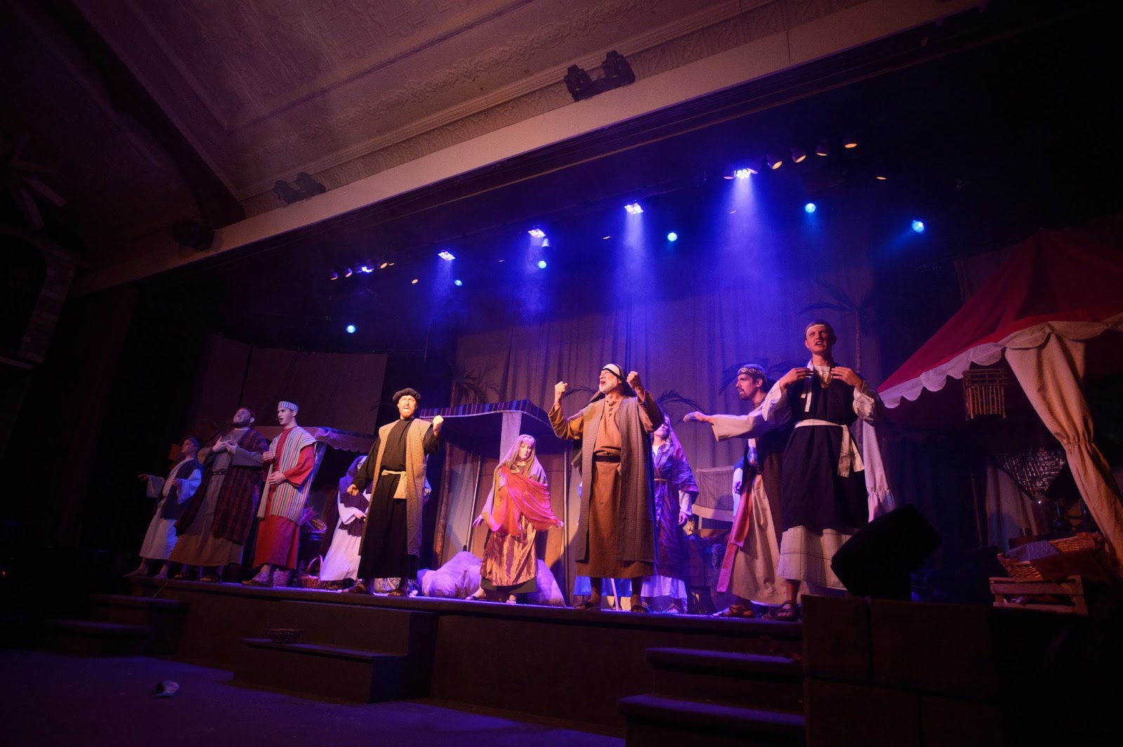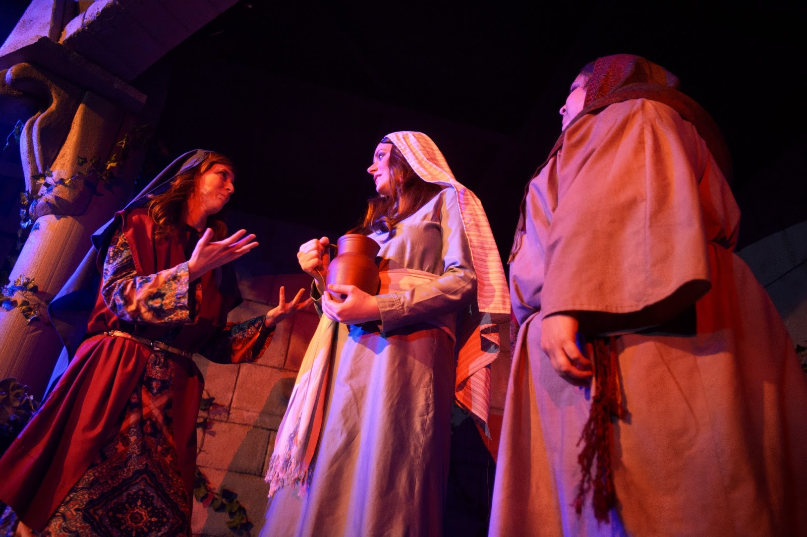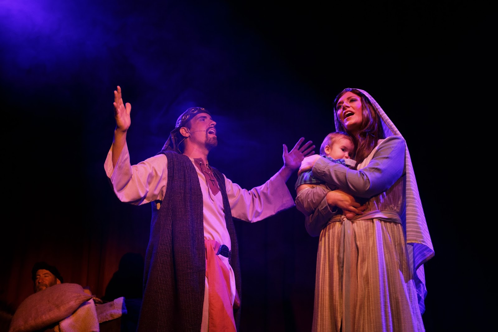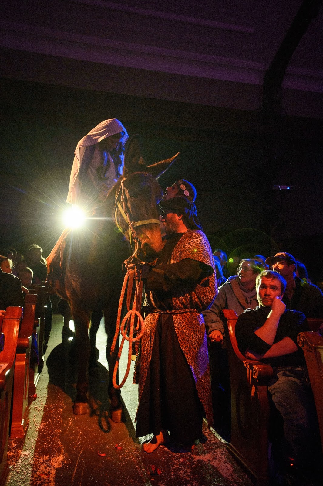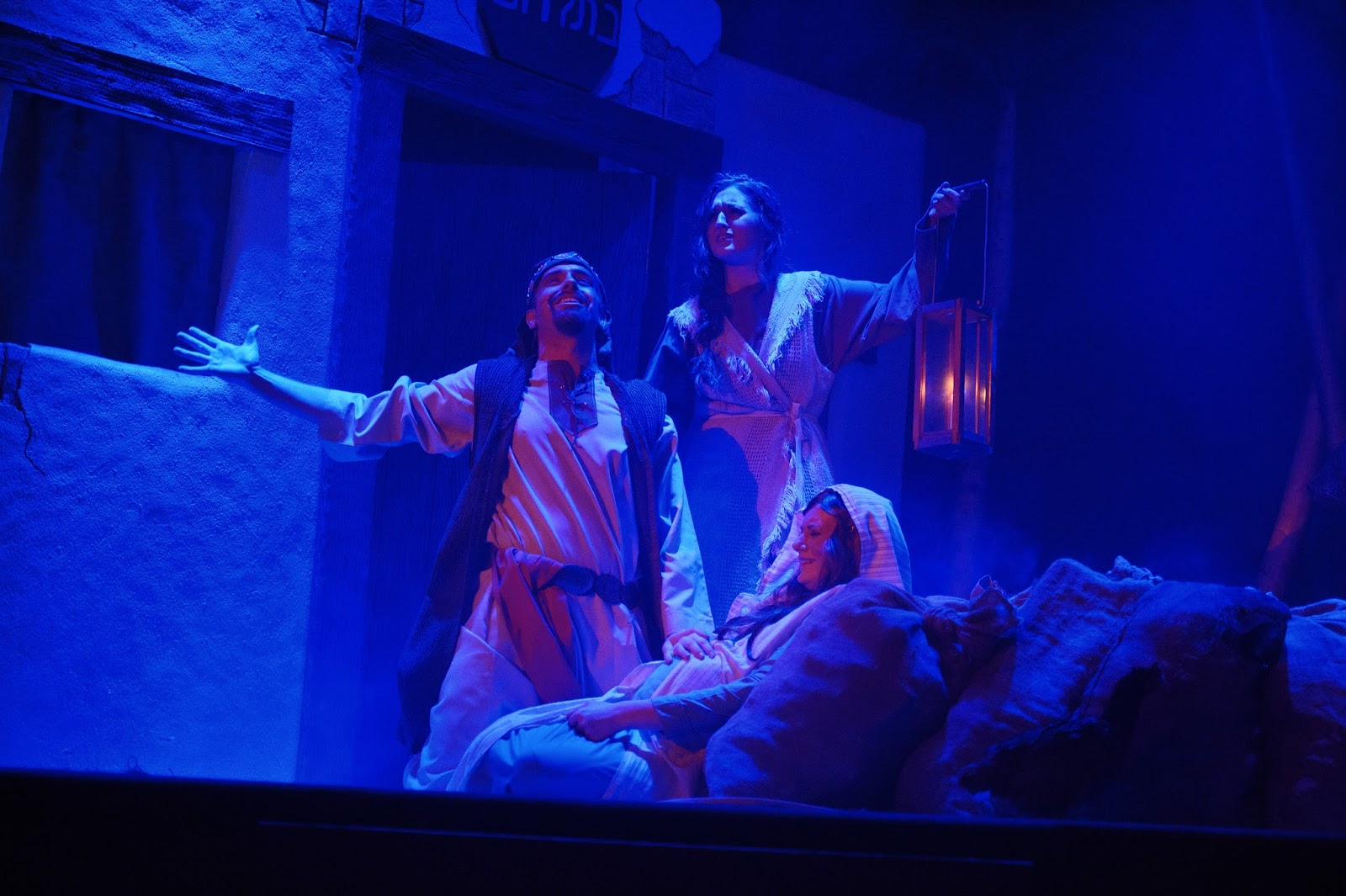 The play script was written by our pastor + a team of several others. Unfortunately, I didn't have time to explain the whole two hour play in this little blog post, so I can see how it would be easy for you to miss the story line since I only highlighted basically the changing of scenes. It is quite difficult to describe the whole story accurately in a post. Everyone that actually comes and sees the play says that the pictures/posts don't do it justice, and I completely agree. The only reason I still post about it is because there are some people who really like seeing the pictures, and we love to post about things going on in our lives. (and the play is a very big part of our family's lives in November/December =))