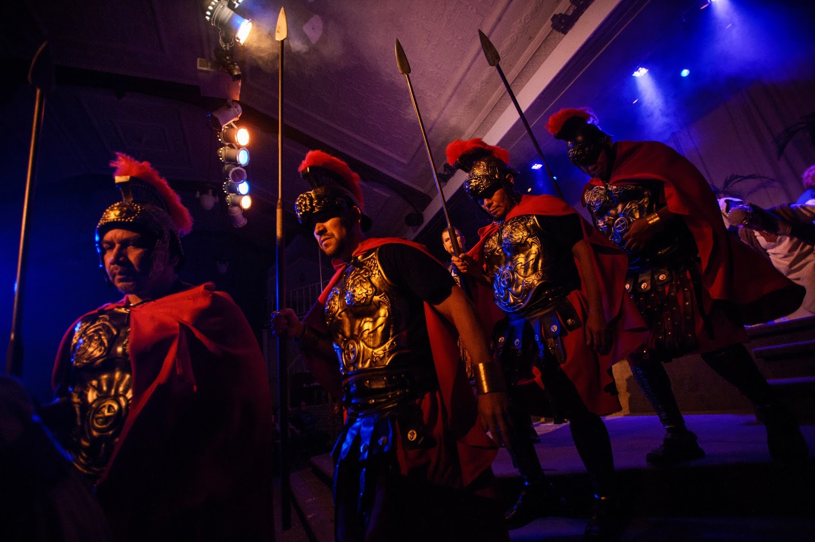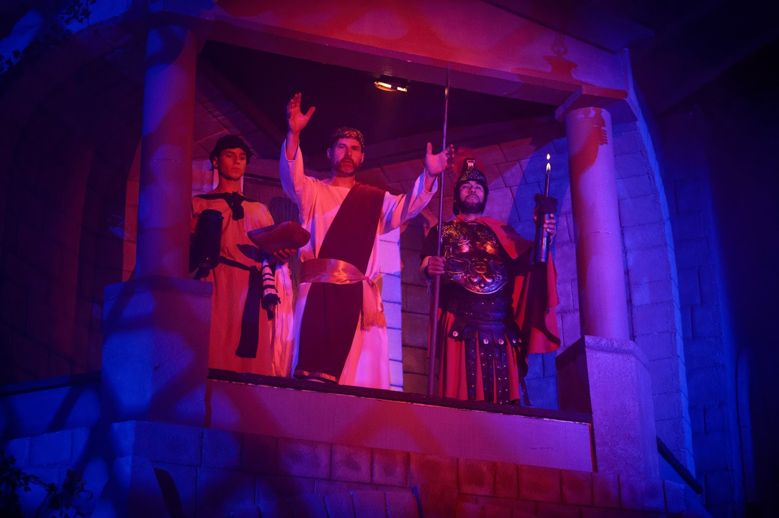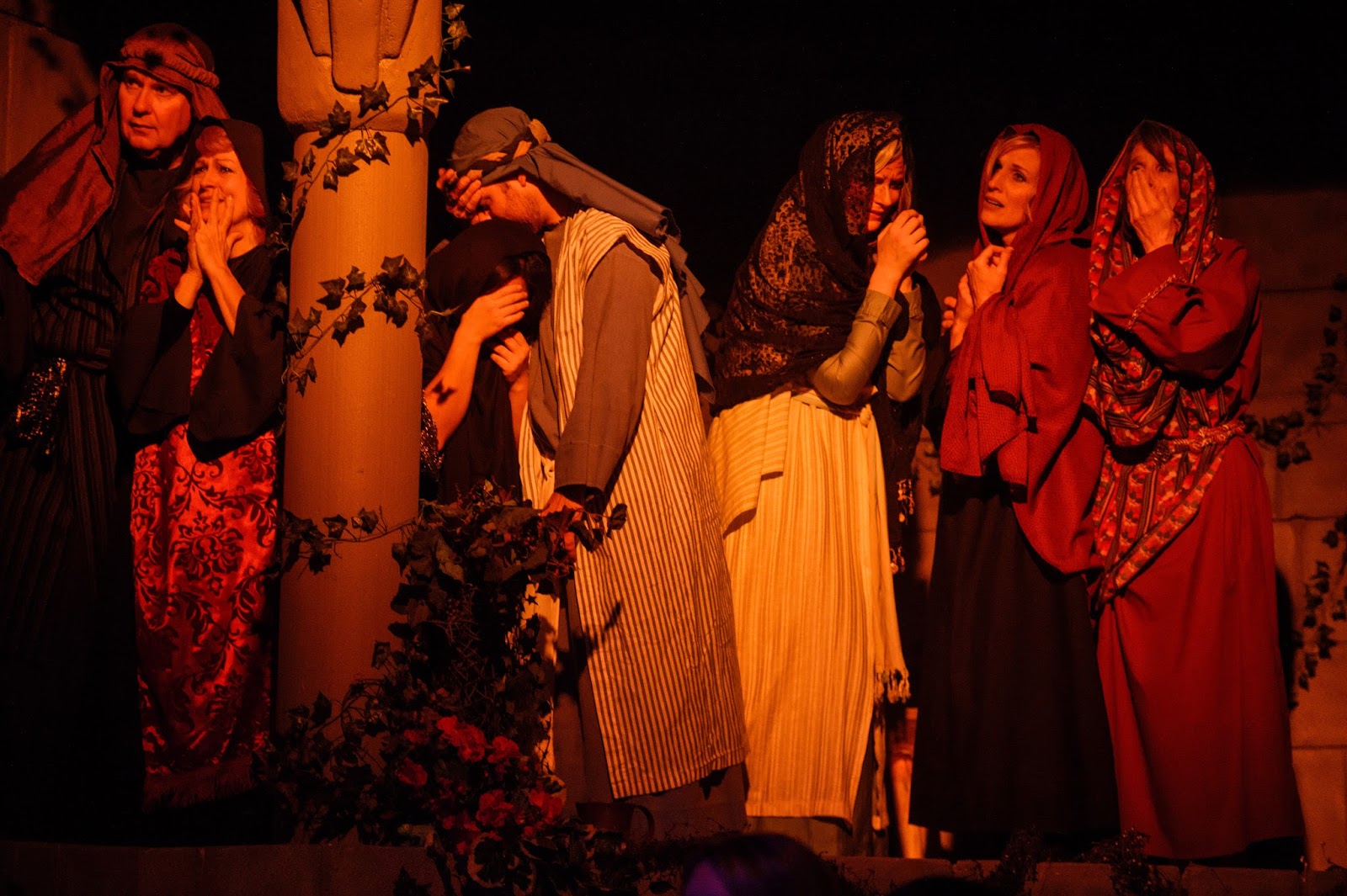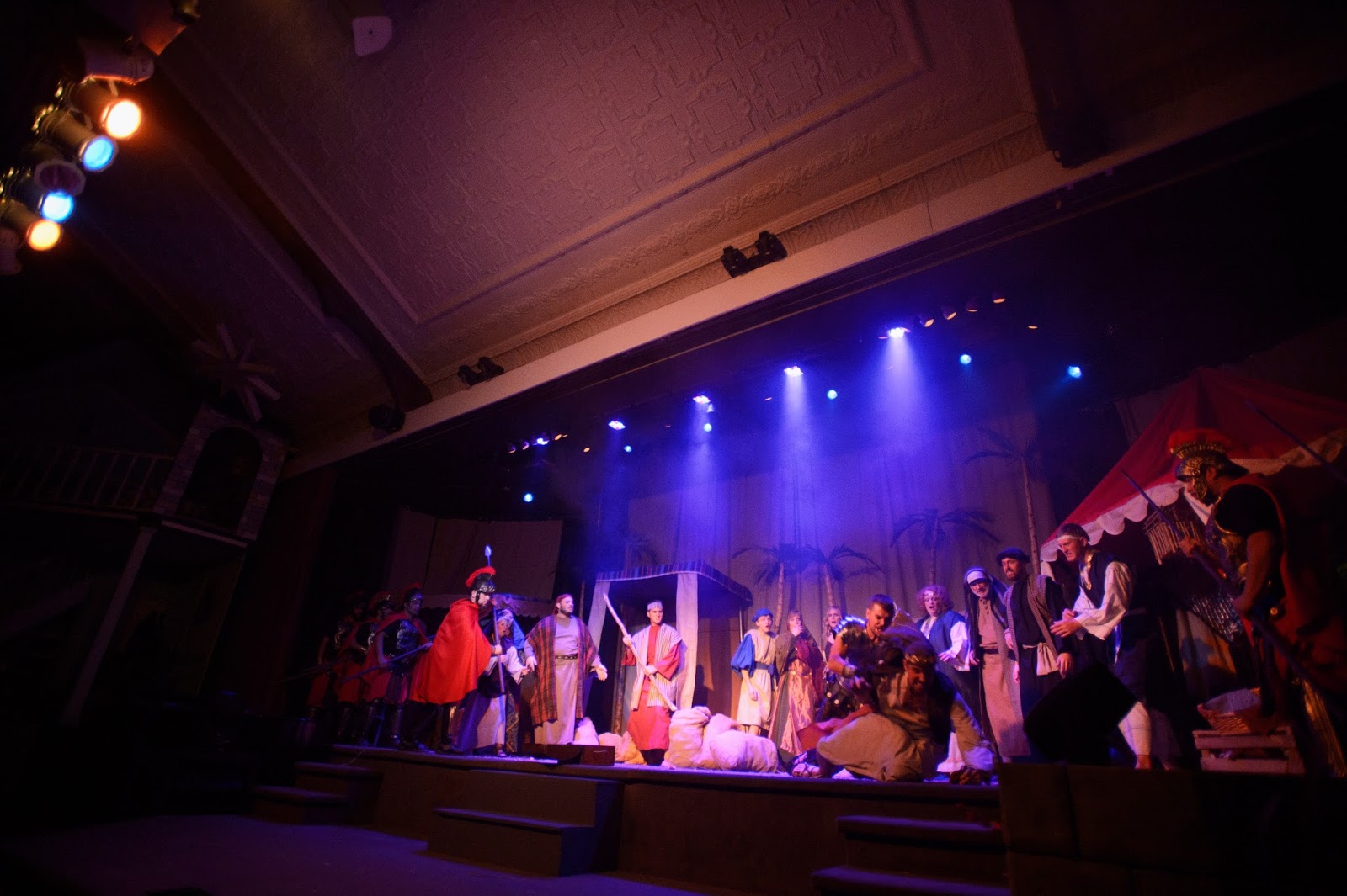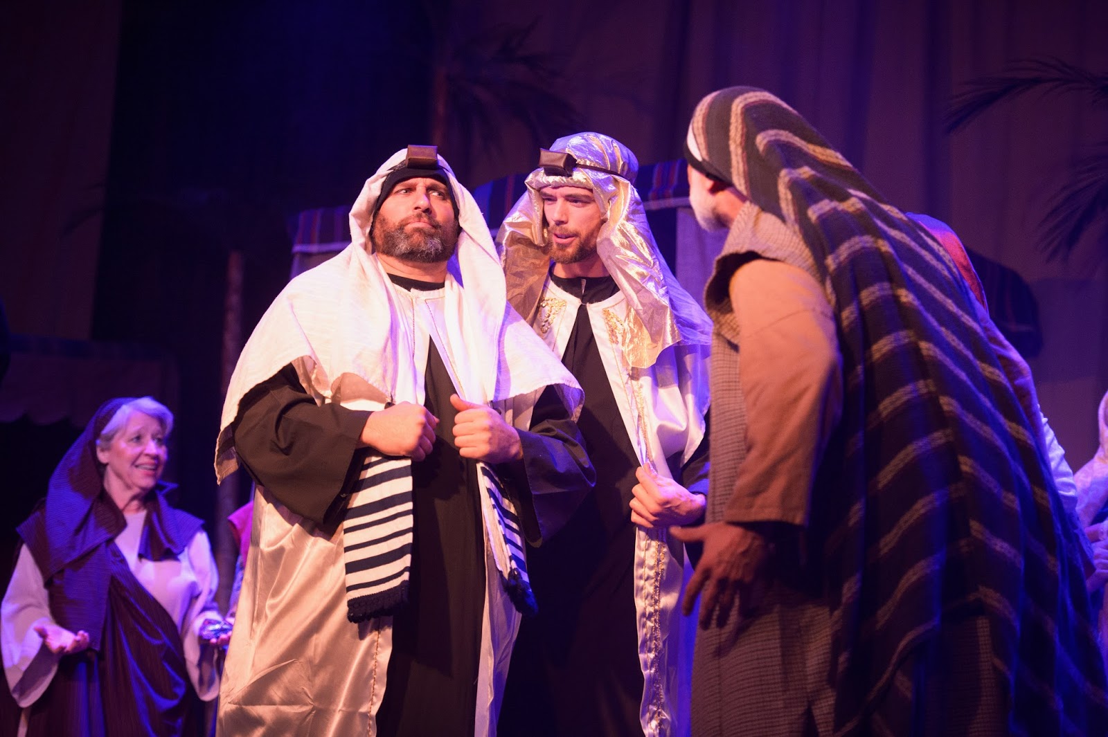 The play script was written by our pastor + a team of several others. Unfortunately, I didn't have time to explain the whole two hour play in this little blog post, so I can see how it would be easy for you to miss the story line since I only highlighted basically the changing of scenes. It is quite difficult to describe the whole story accurately in a post. Everyone that actually comes and sees the play says that the pictures/posts don't do it justice, and I completely agree. The only reason I still post about it is because there are some people who really like seeing the pictures, and we love to post about things going on in our lives. (and the play is a very big part of our family's lives in November/December =))