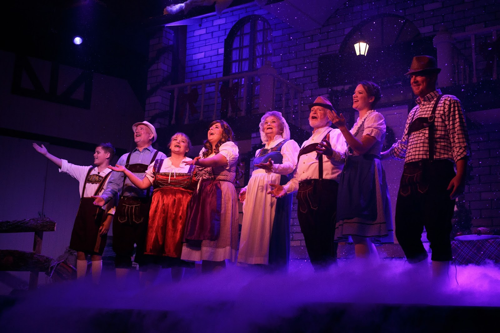 I (Chelsy) was privileged to again have the opportunity to coordinate the outfits for these first scene actors. The time period was little more difficult to authentically put everything together, but the finished product was very worth the extra time! Special thanks goes to the gentlemen who were gracious enough to appear in lederhosen despite their personal preferences. =)
