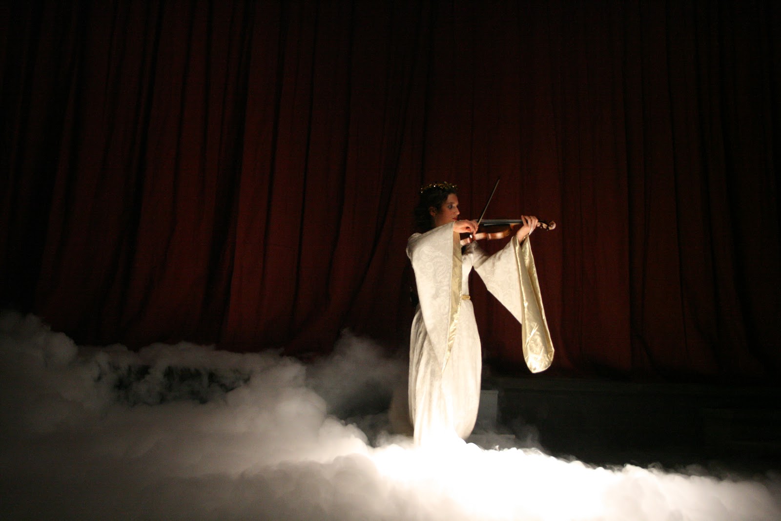 So awesome,Allison looks so awesome with her white gown and the smoke,I was in a play for christmas at a theater near by doing violin stuff wish I got some smoke…hehehehe,but smoke is reserved for the truly awesome musicians like your family. 😉