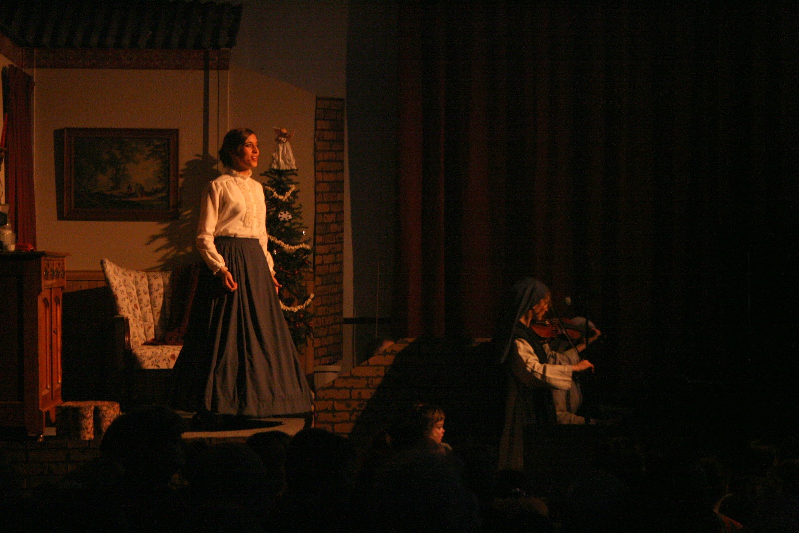 Our entire family was involved in the play. Mom served hot chocolate/candy canes to attendees, dad was an usher, Allison & I helped with hair/makeup, and then all of us were actors except for Carson who worked backstage with switching out props and setting scenes.