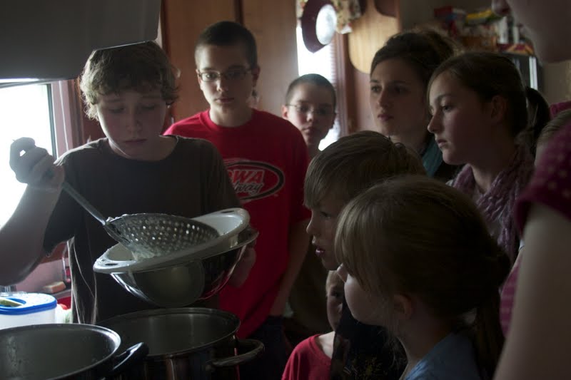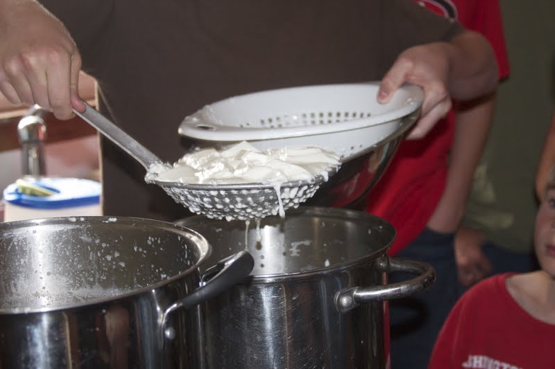 Last week some friends, the Carden family, held a cheese-making demonstration.  It was a very fun and informative afternoon.  Hopefully, we will enjoy our very own fresh, home-made mozzarella cheese someday in the near future!