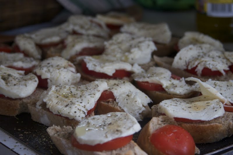When the cheese was completed, we had bruschetta sandwiches- baguette slices with tomato, olive oil, seasoning, and fresh mozzarella.  {absolutely scrumptious!}