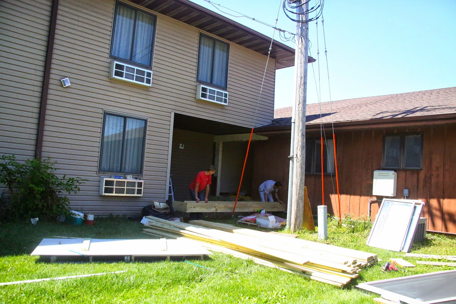 Mitchell + Josh have been working on a friends’ construction crew this spring. Dad hired the crew to build a deck off of our manager’s apartment at the hotel.