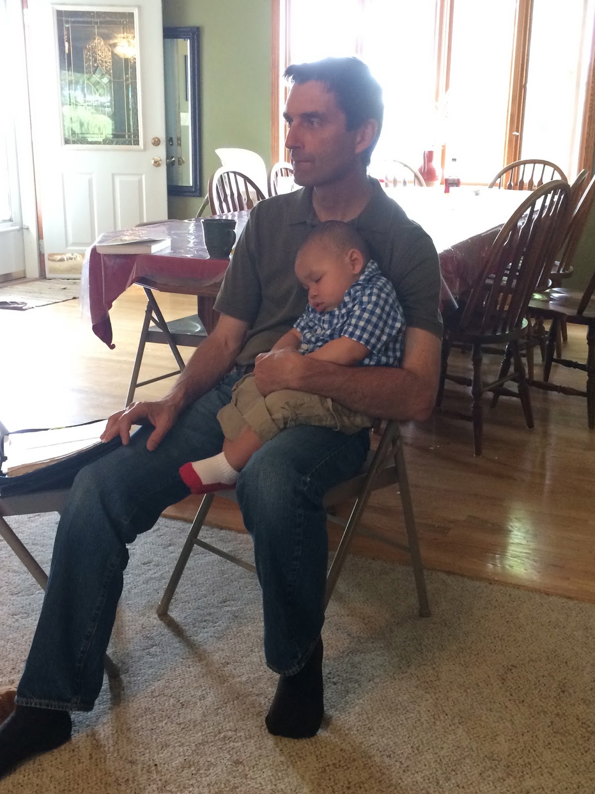 Getting to babysit for friend’s children is always a treat for this kiddo-loving family of ours. This precious little guy fell asleep on dads lap during morning devotions.