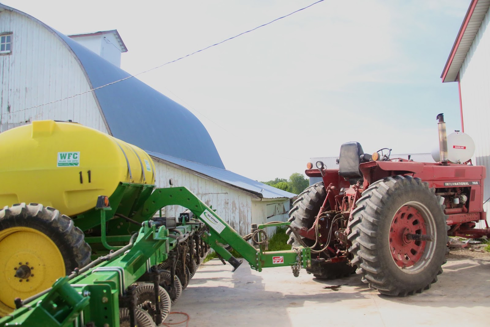 This is one of my favorite pictures from this entire spring. Like father, like son! Dad + Carson, loading up the planter with seed, in preparation to head to the fields to plant.