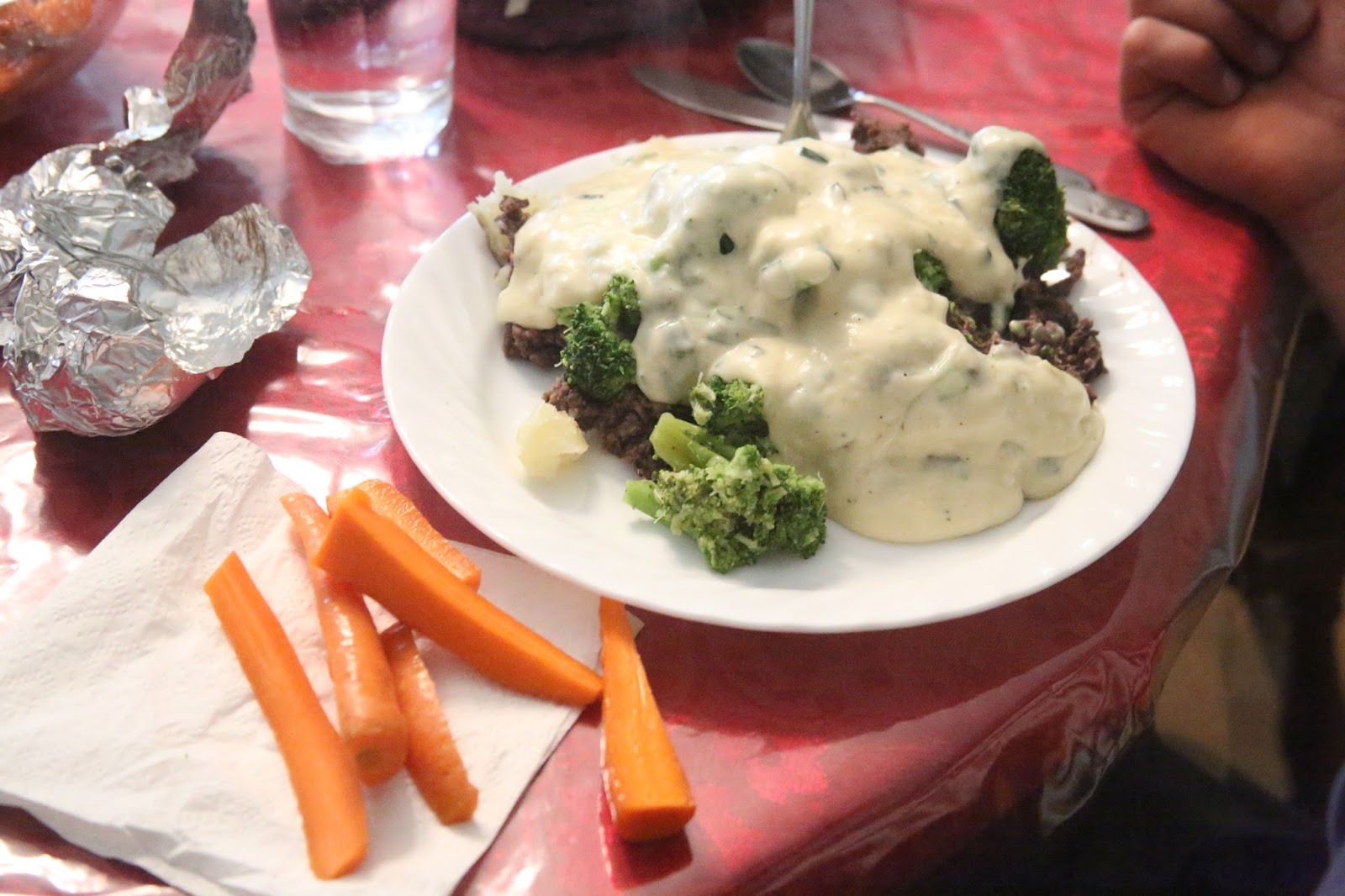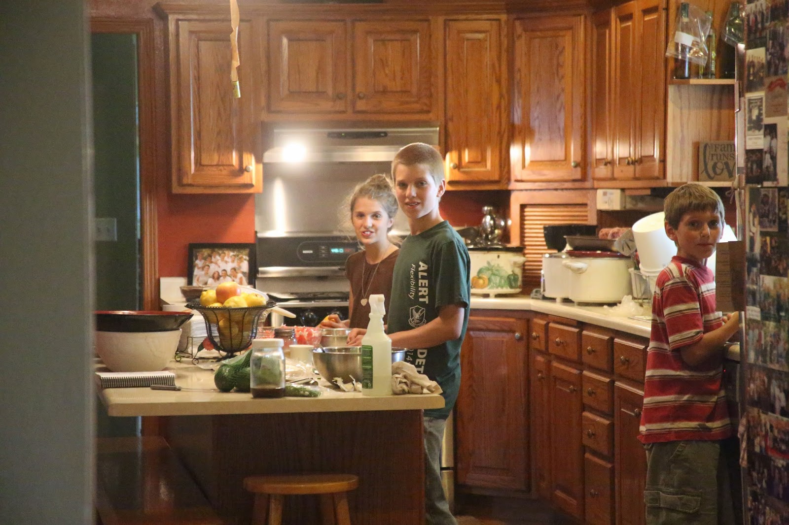 This is what the boys eat like after working hard outside all day. We basically cook as much as a restaurant these days!