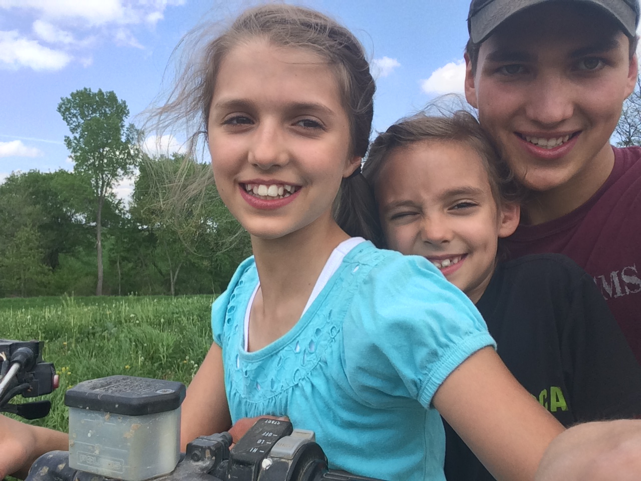 Carson, giving our pastor’s son a fourwheeler ride on Sunday afternoon.