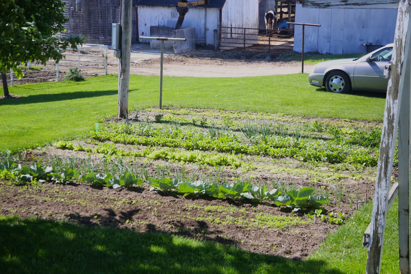We fertilized, weeding, + mulched the gardens before we left, and then an Amish neighbor girl is spending a few hours each week watering and keeping the main weeds at bay. =)