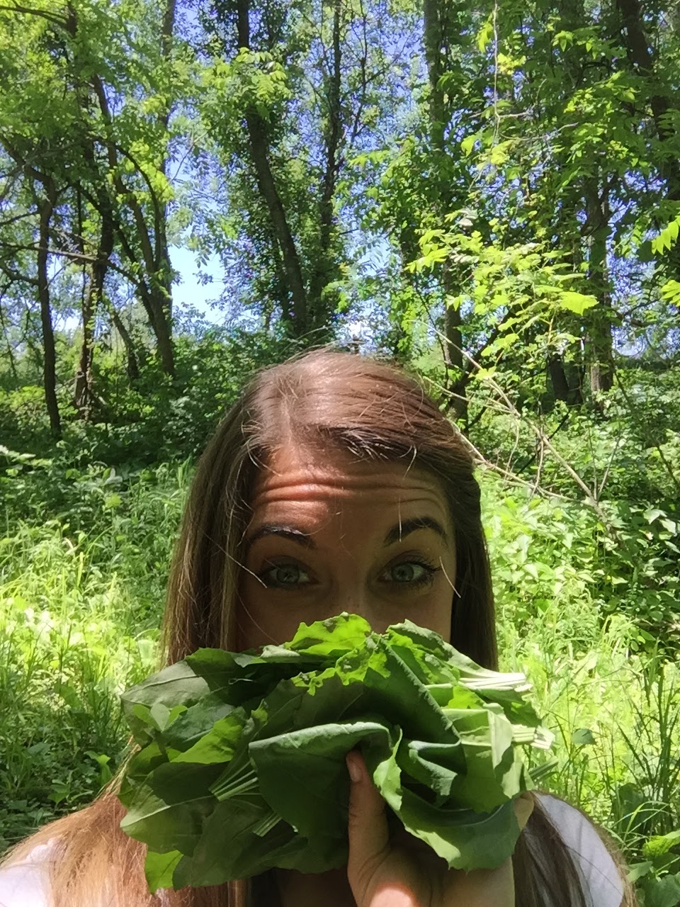 Picking plantain out at the campsite in preparation for making a plantain salve!
