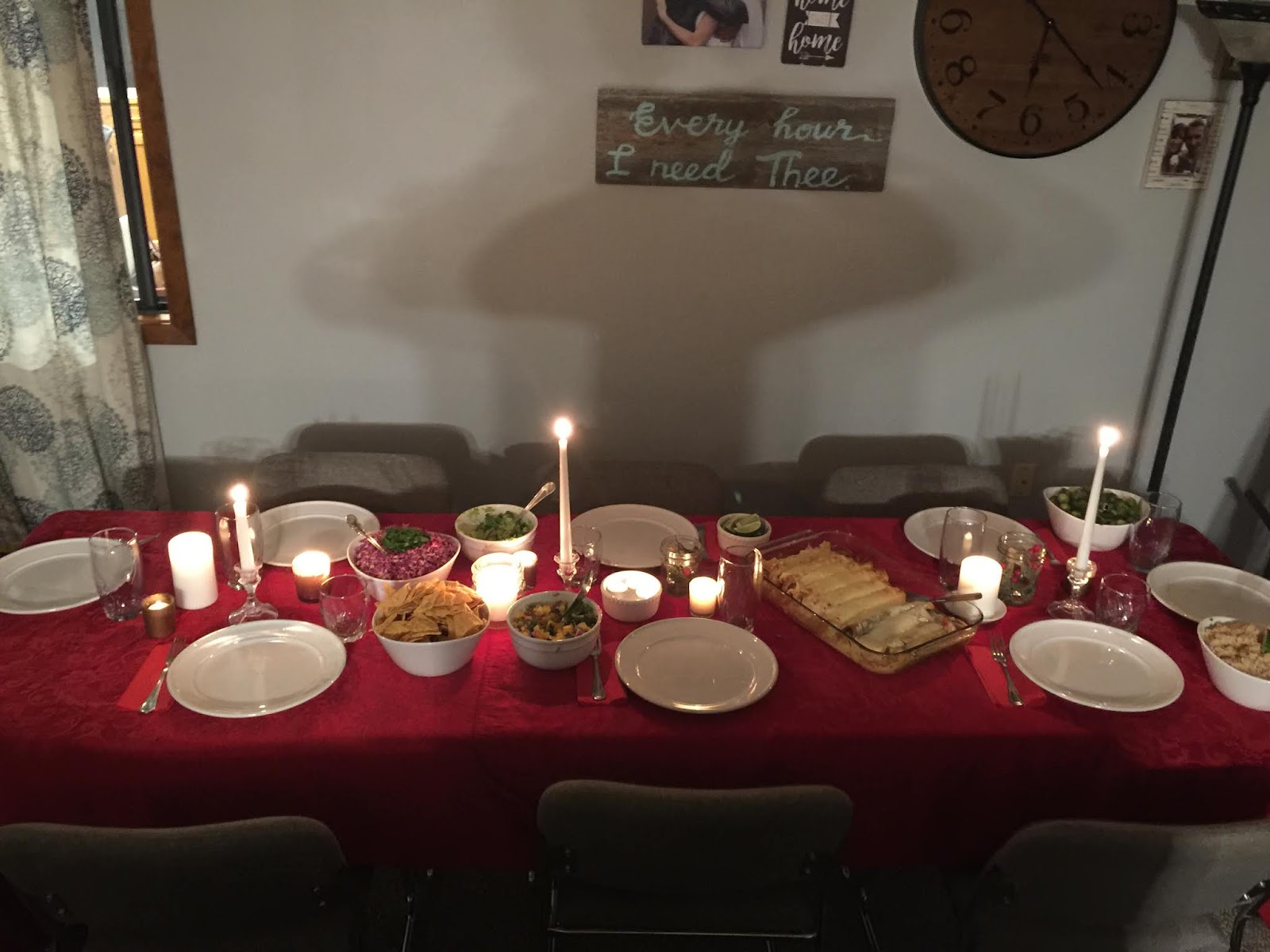 A special Christmas Eve dinner with those still at home. We had seafood enchiladas, rice, tortilla chips, coleslaw, brussel sprouts, and gelato for dessert. After supper, we enjoyed watching a movie together as a family.