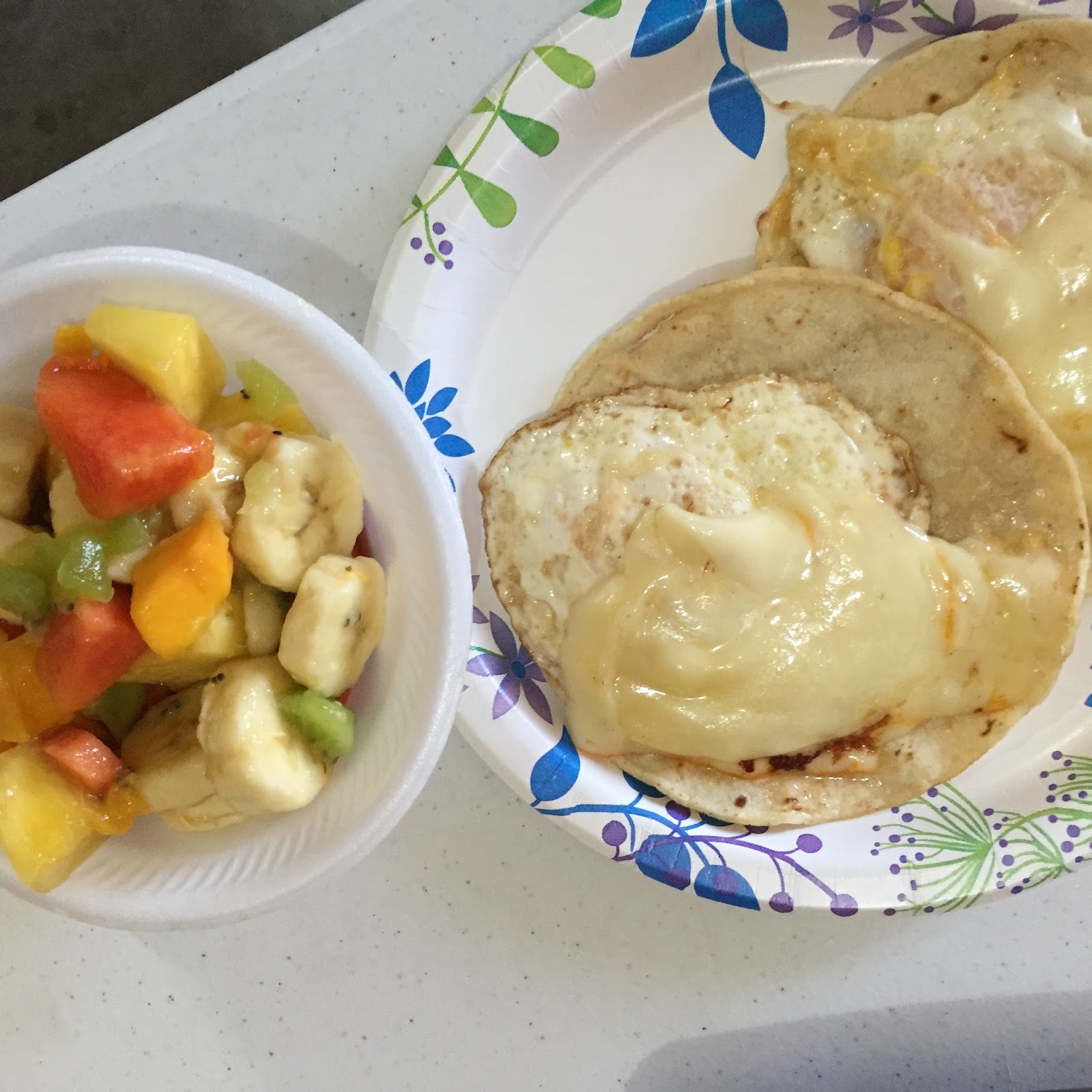 Making breakfast at a church one morning-fresh corn tortillas with eggs + cheese.