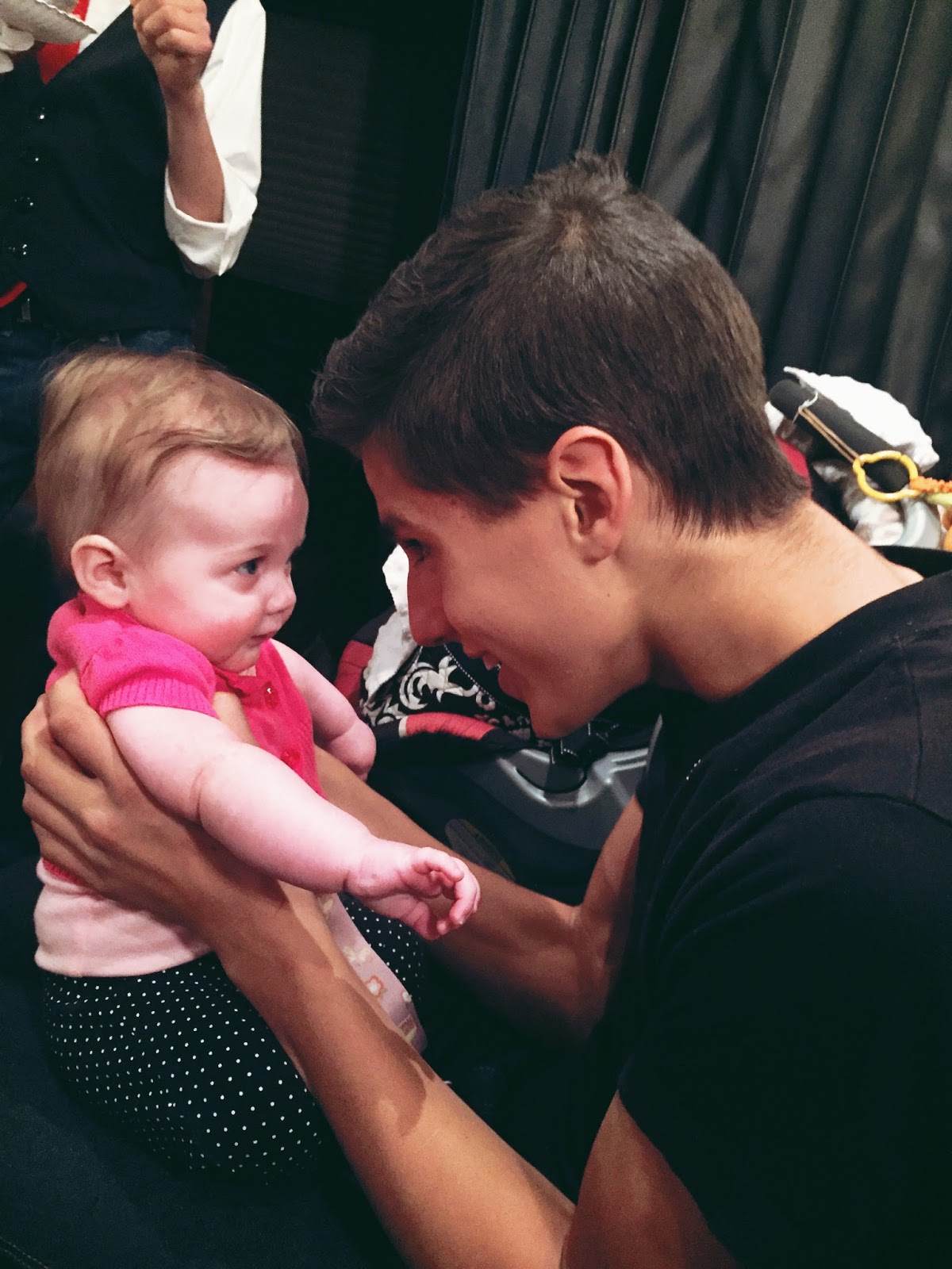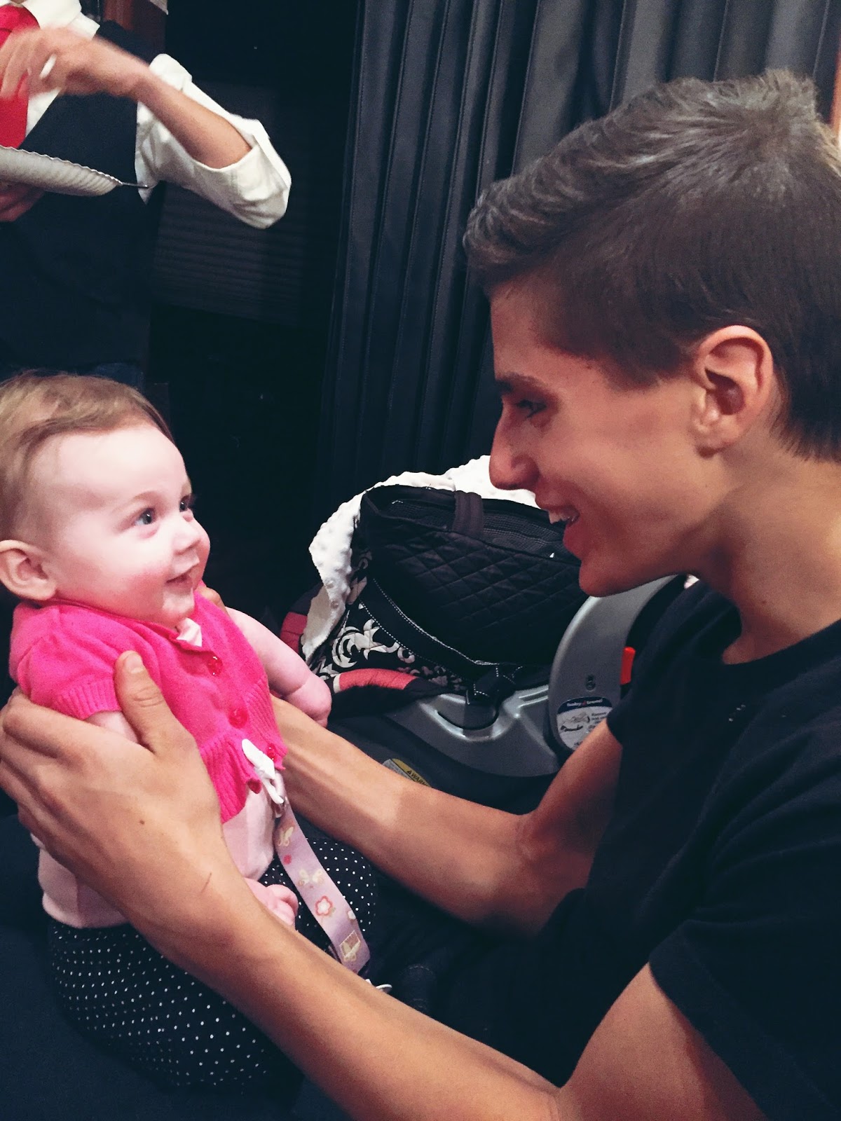 Funny story….one night at dinner Josh and I were sitting at the same table and I was holding Bella, and the couple sitting across from us asked if were were husband + wife, and she was our baby! We all got a kick out of that, especially because Josh + I are two of the darkest ones in our family, and Bella is as light and fair as can be. =)