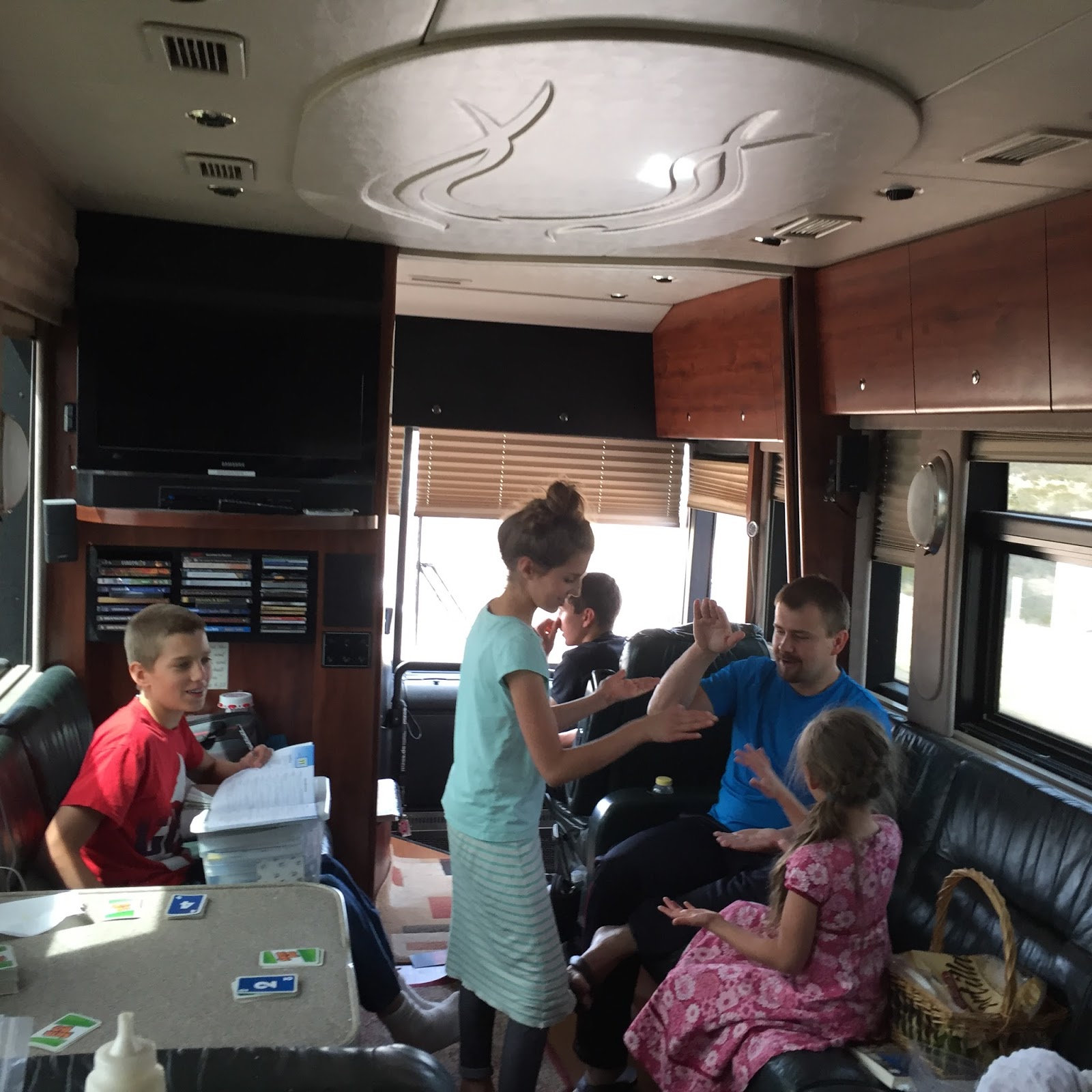 Driving down to Durango and Zachetacus made for several long days on the bus, since we couldn’t drive at night like we normally do. We tried to make the time go faster with various activities on the bus. Above, Peter is teaching the girls a new game.