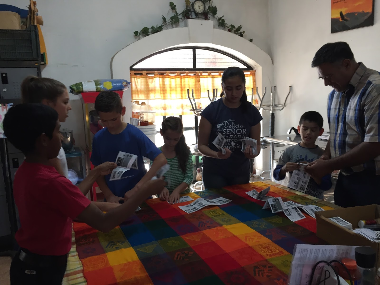 Our younger three, helping some of our friends prepare Spanish Gospel tracts to pass out.