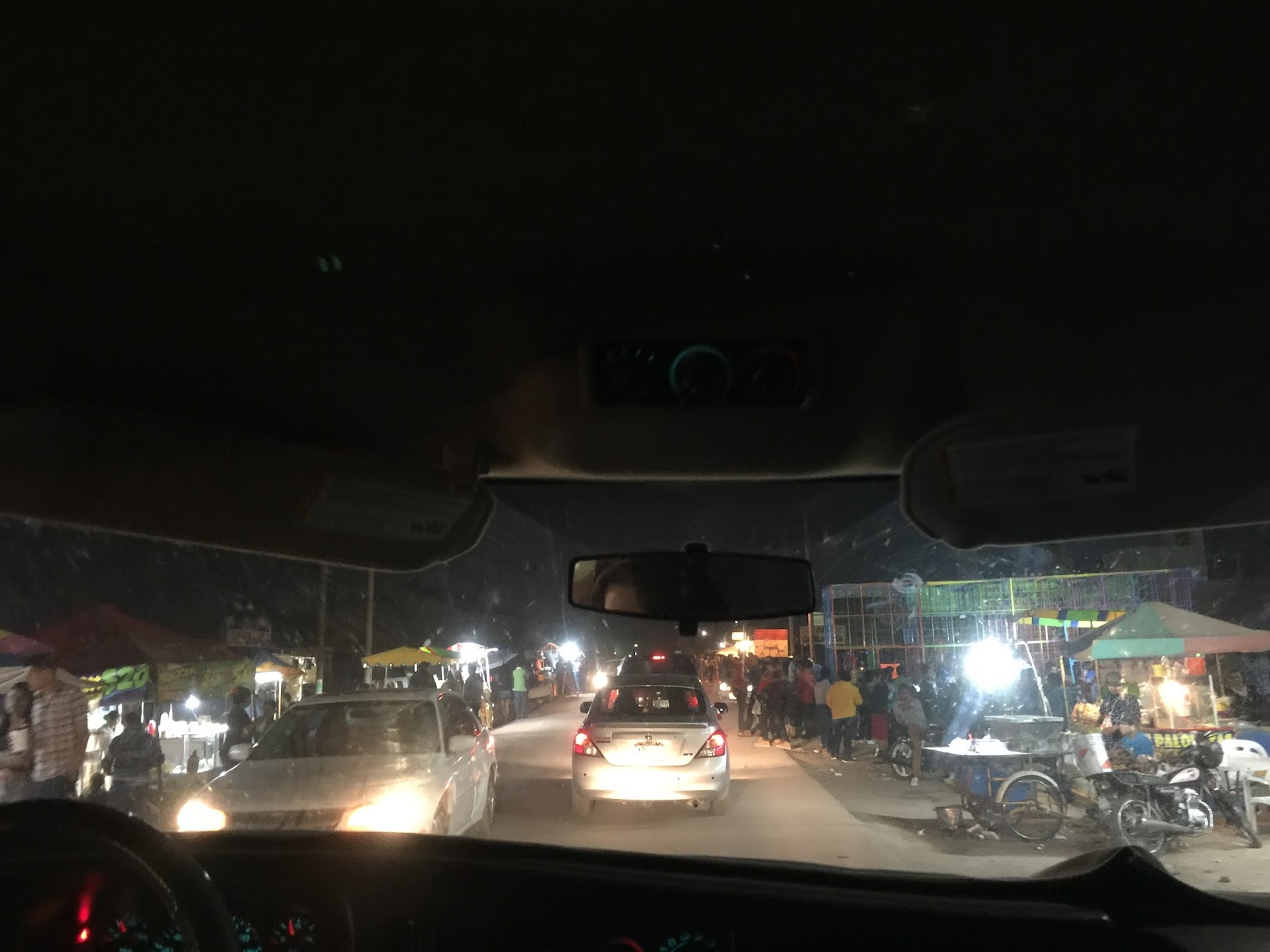 Driving through a party, in town, on our way back to the pastor’s home after the concert.