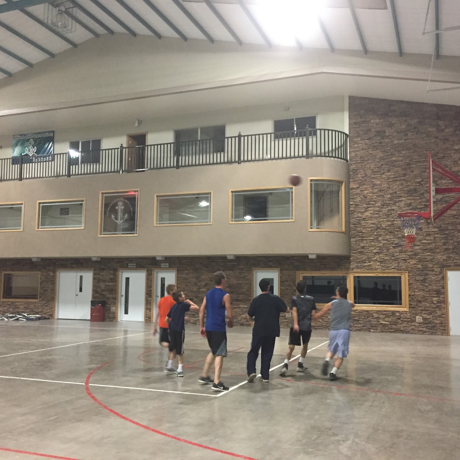 Catching some wifi signal and quiet Bible time behind one of the gyms we sang at.