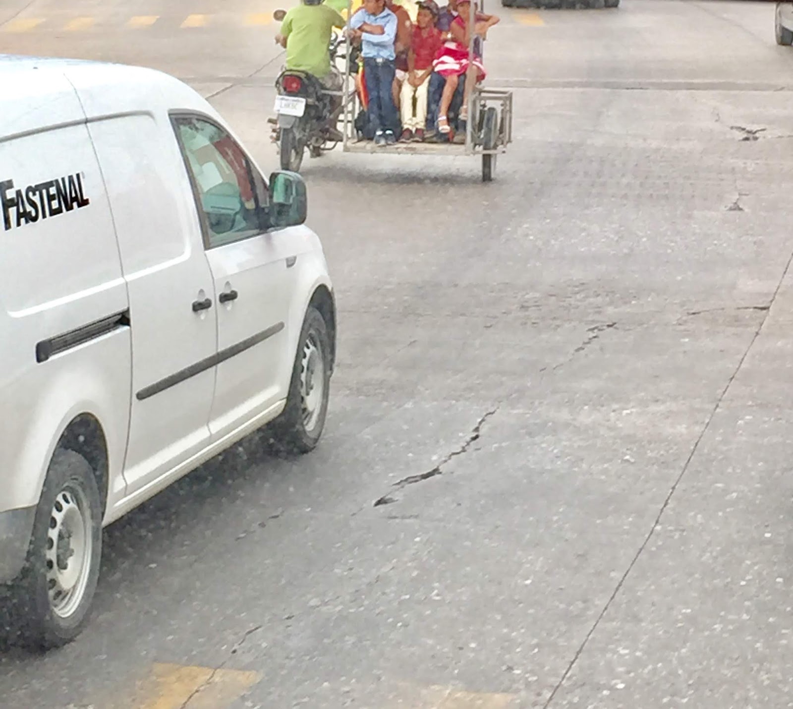 One of the only no-so-fun things about Mexico and Belize is the speed bumps!( We probably went over about one thousand during those three weeks!!!!) On this particular occasion, the bus came TOO CLOSE to the unwelcomed piece of concrete and we narrowly escaped being hung up!