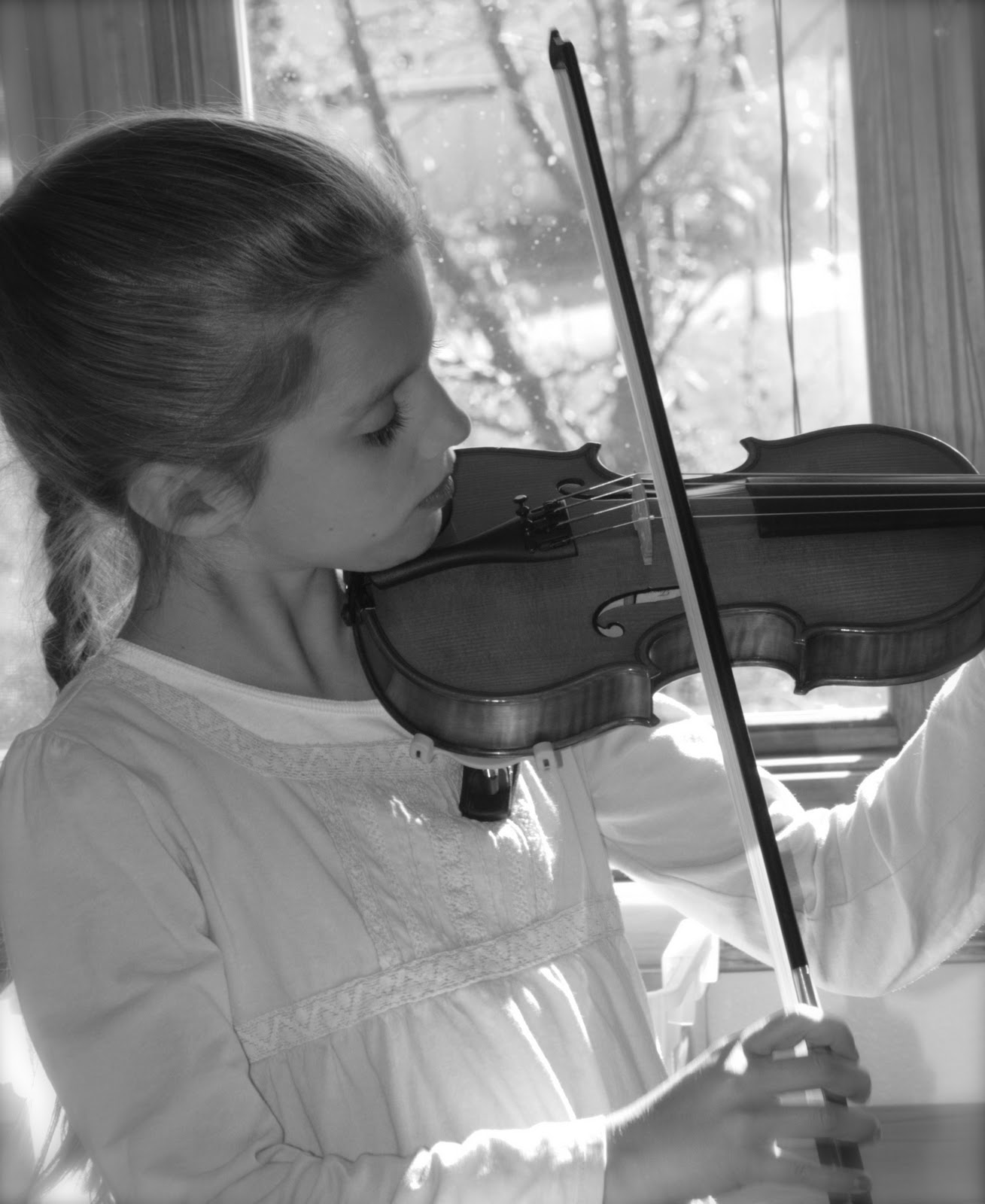 Several weeks ago, Elizabeth started playing violin. Her little 1/2 size violin is beautiful!