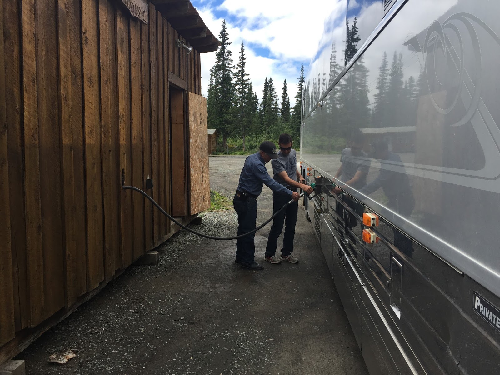 A very kind gentleman who lives right across from the church, filled us up with fuel before we hit the road towards Anchorage.
