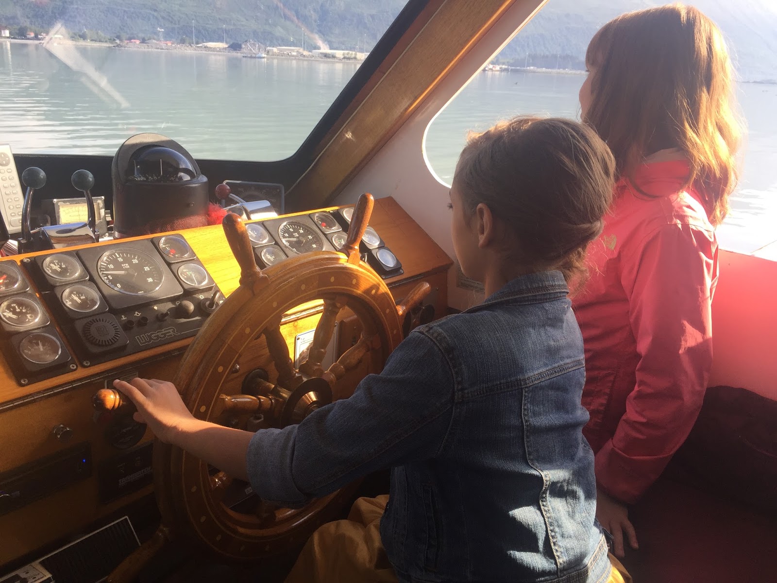 After we sang, the caption let some of the children on board have a turn at the wheel. =) Here is Rebs!