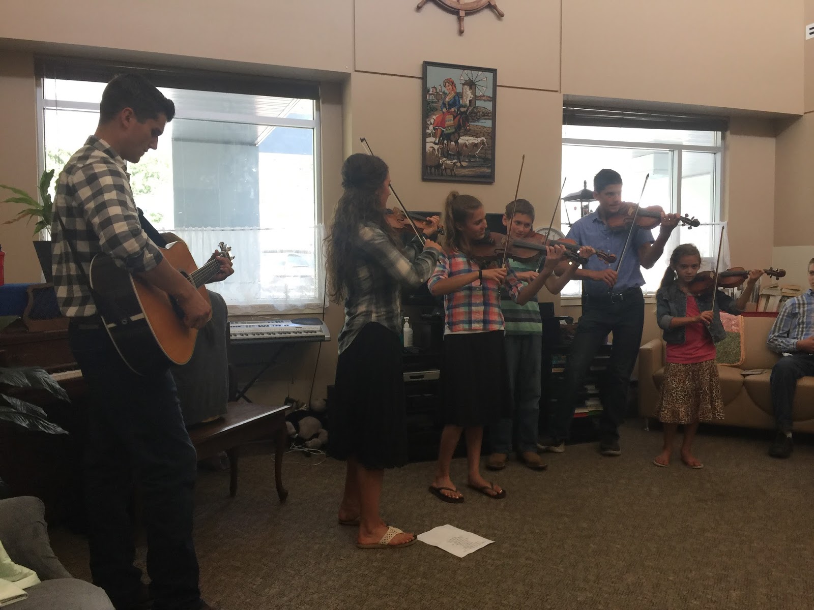After a church cookout at the local park, we headed to the local retirement center (where the pastors wife works) and sang/played for the residents there. One very sweet thing that happened there was that as we were singing, mom felt impressed to go over and give one of the resident ladies a back rub. Her initial thought was that that would seem a little strange and random, so she didn’t right away, but then she kept feeling like she was supposed to. Within a few minutes she got up and went over (this was all while we were singing so we didn’t find out about it til afterwards) and asked the lady if she could give her a back rub. The woman got tears in her eyes and told mom that her back had been hurting and she had been praying all day for God to send her someone to give her a back rub!