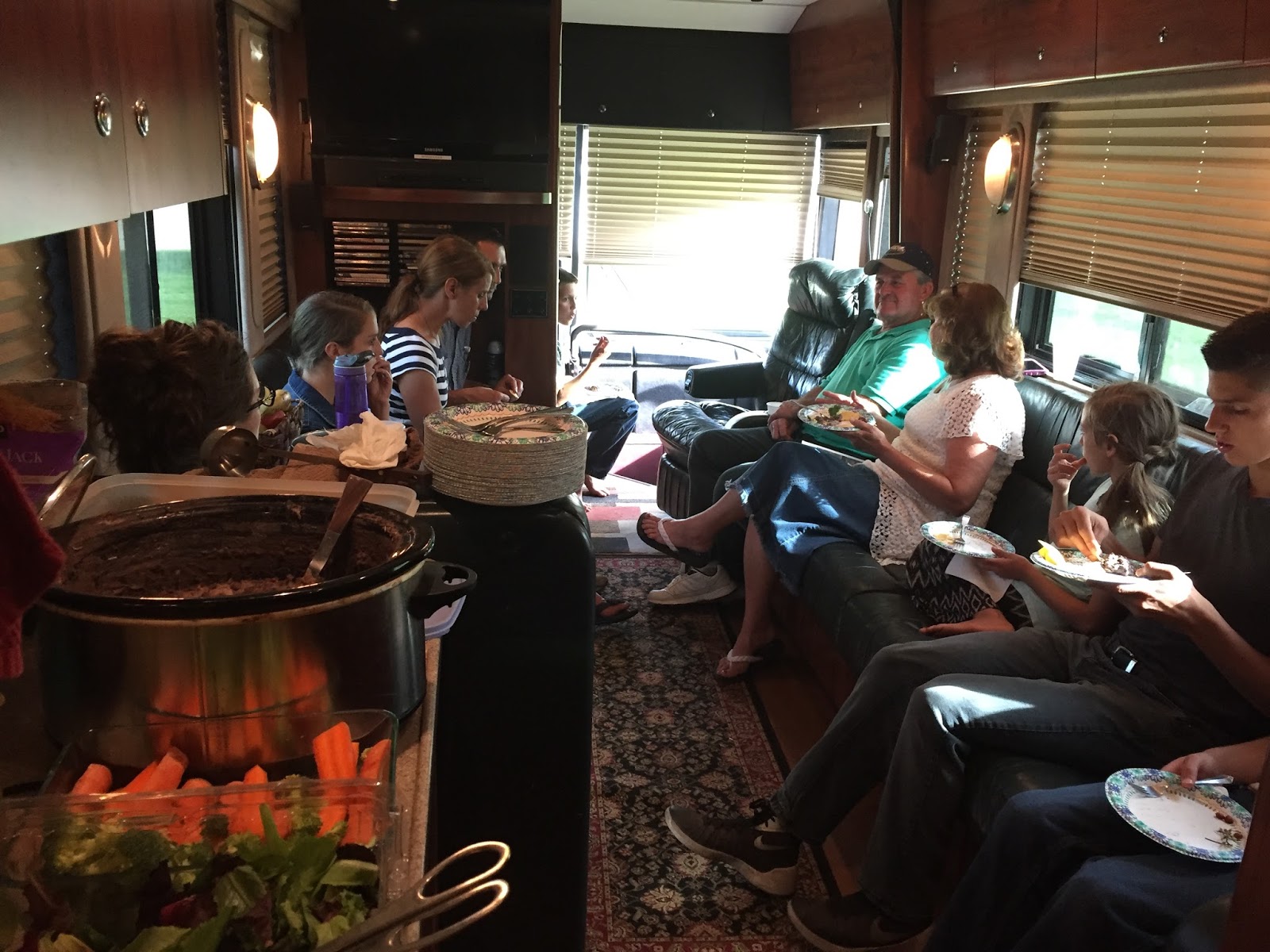 During the night, we passed some friends on the highway! We met up the next day and enjoyed dinner together before our evening concert in Watson Lake.