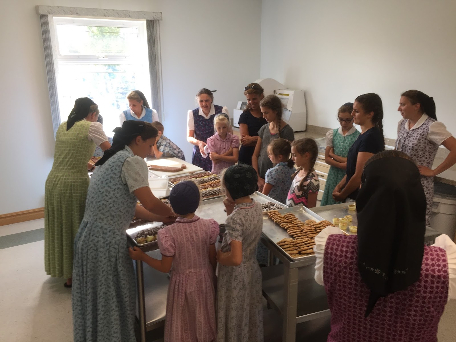 It had been baking day and the smells coming from that bakery were unbelievable. Here, we watched as some of the girls arranged platters of cookies to serve after the evening meal.