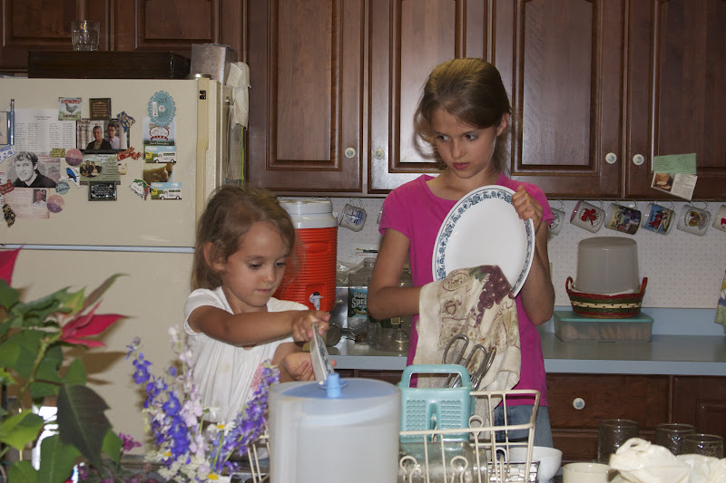 This is tradition. We have pictures of Mitchell & I when we were this size, washing and drying dishes at grandpas.