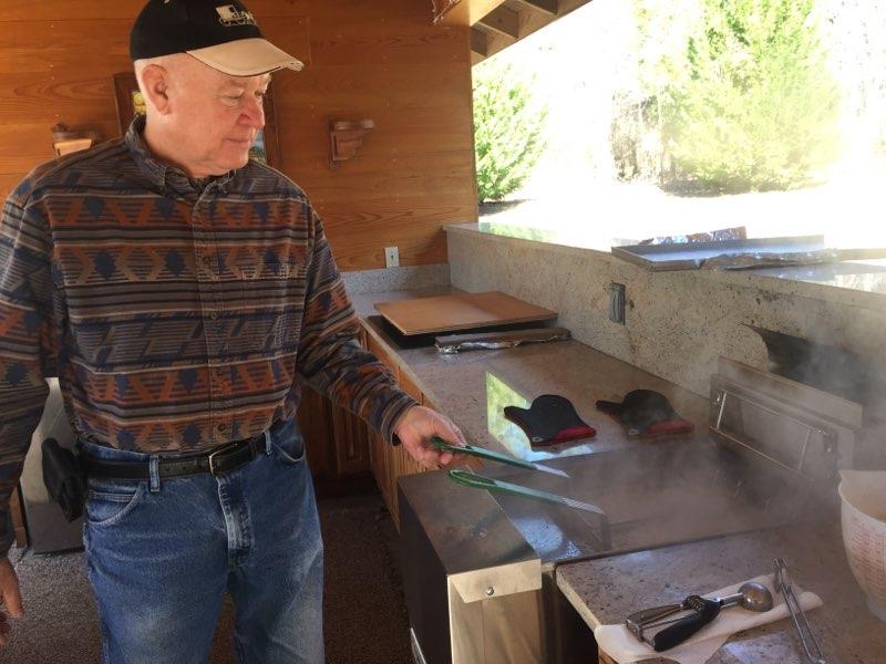 Mr. Tanner working his wonders. He deep fat fried some delicious fish, hush puppies and fries for us.