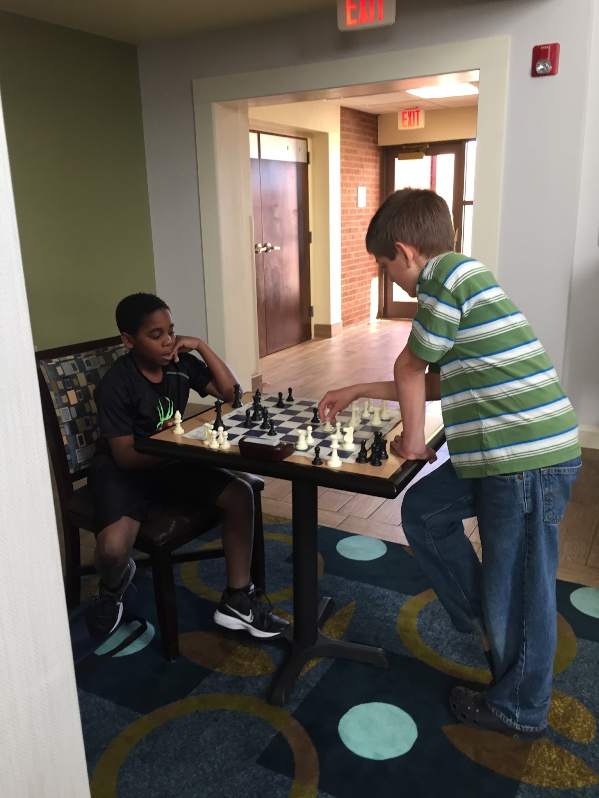 Above, Hudson enjoys a chess game with a friend, one the sons of another one of the family bands there.