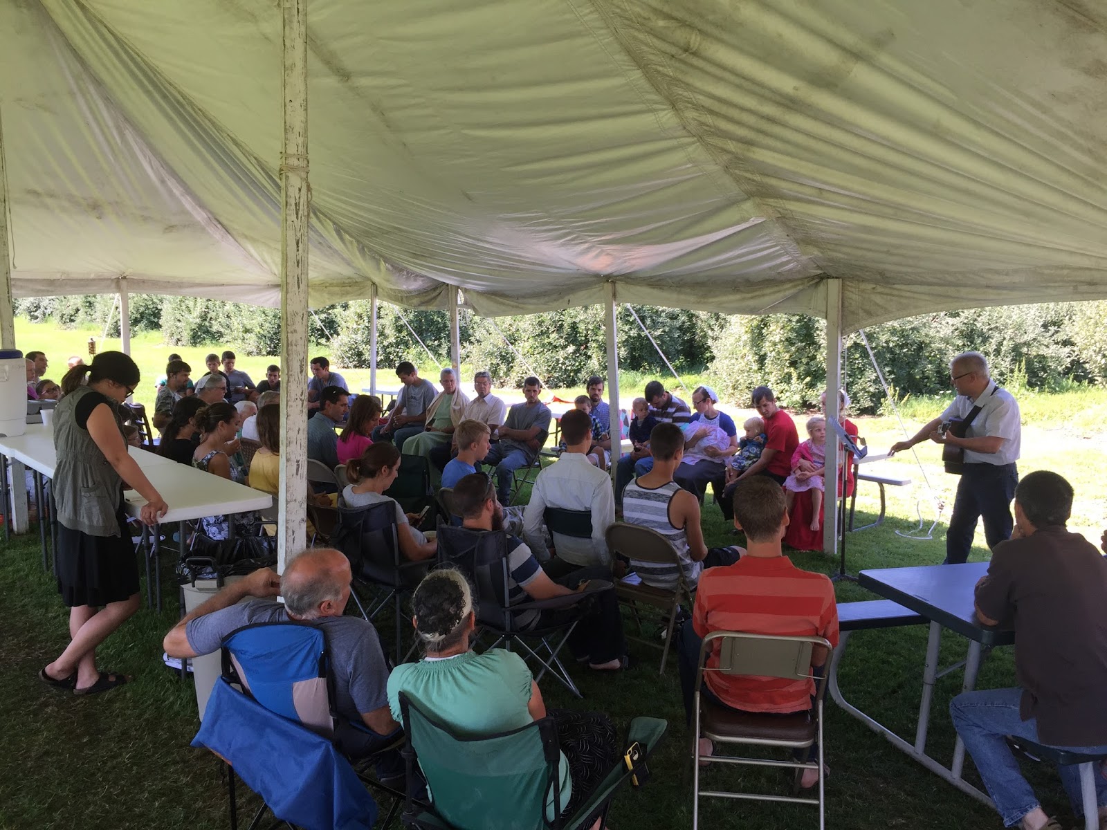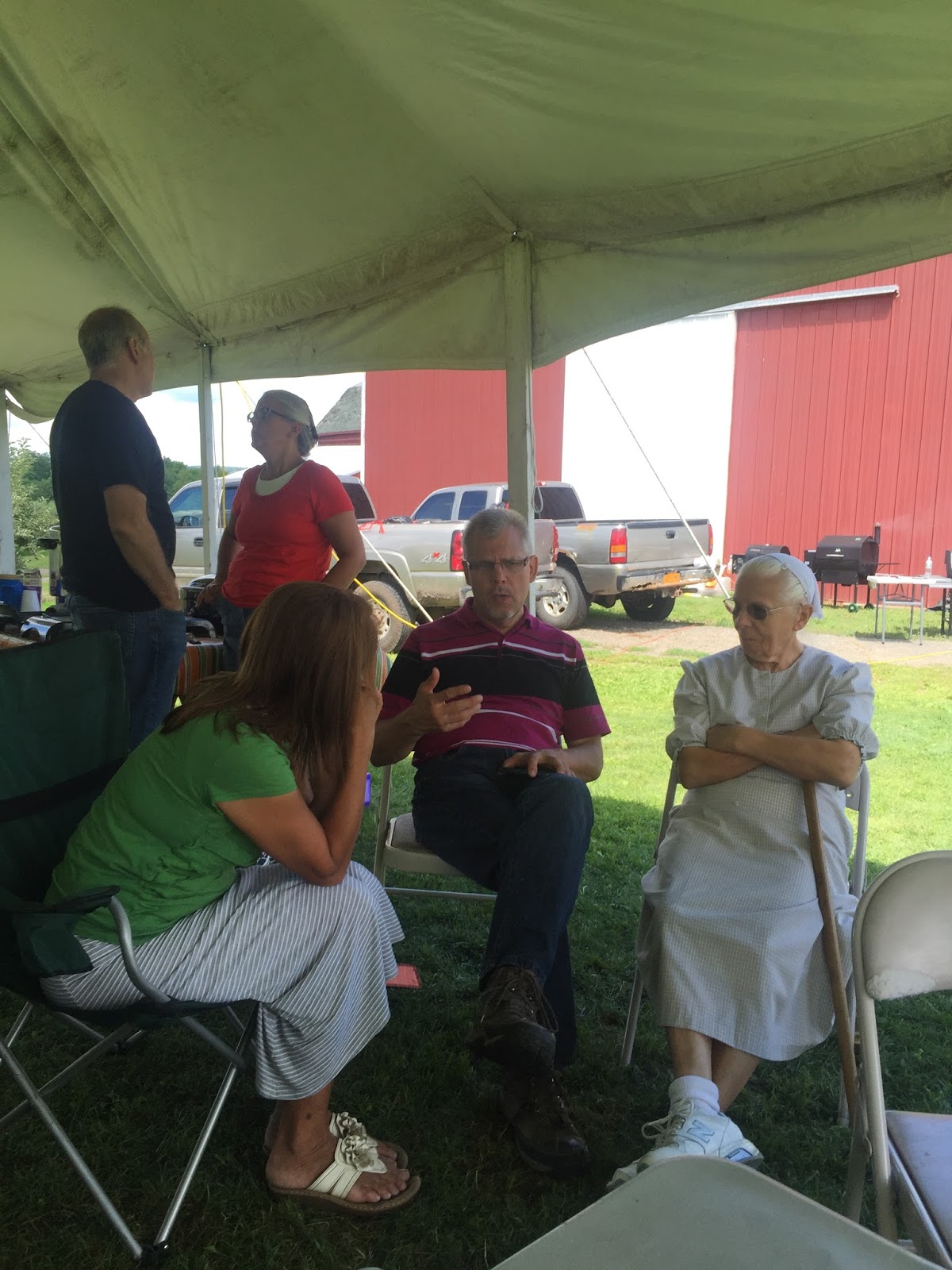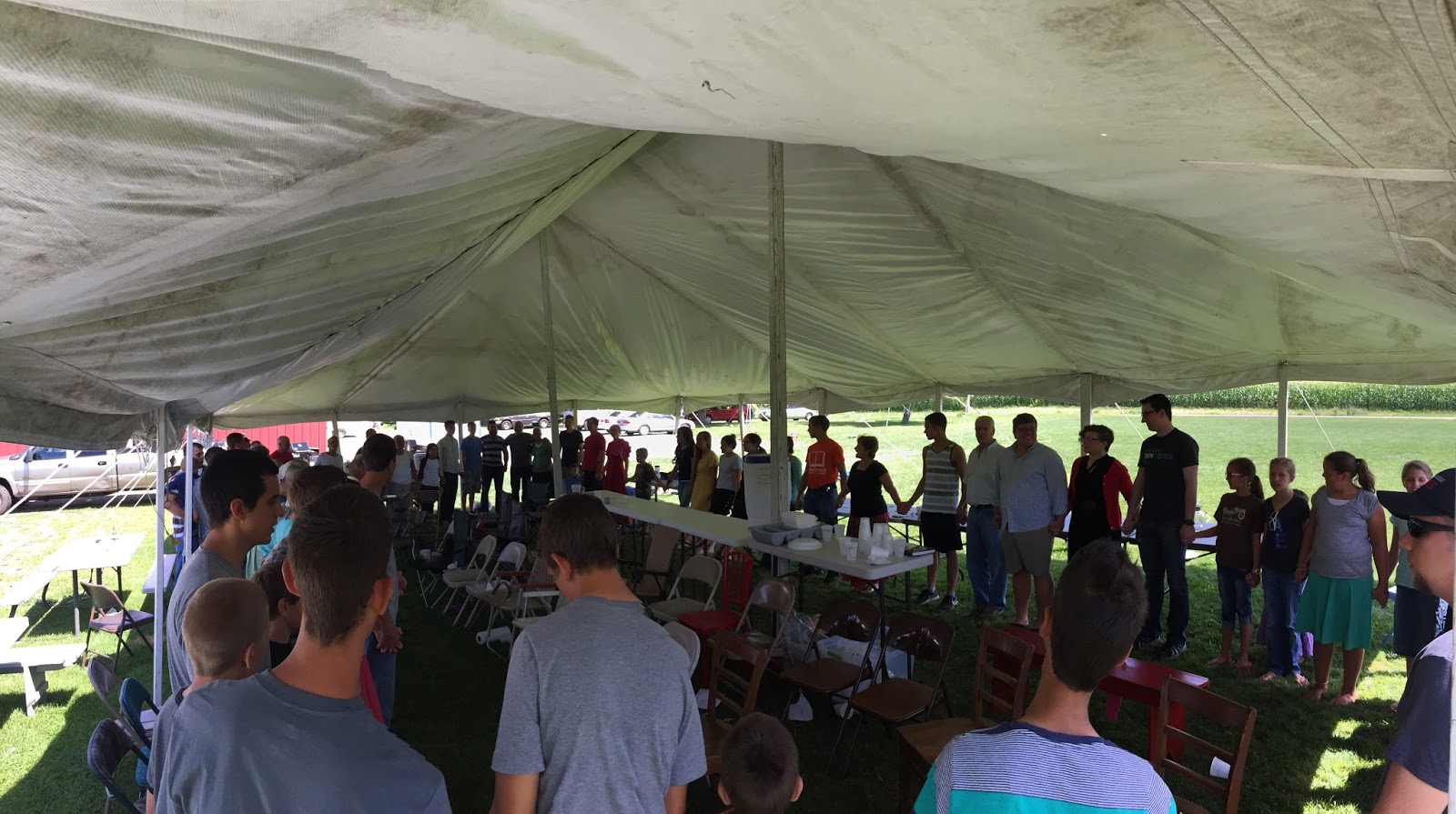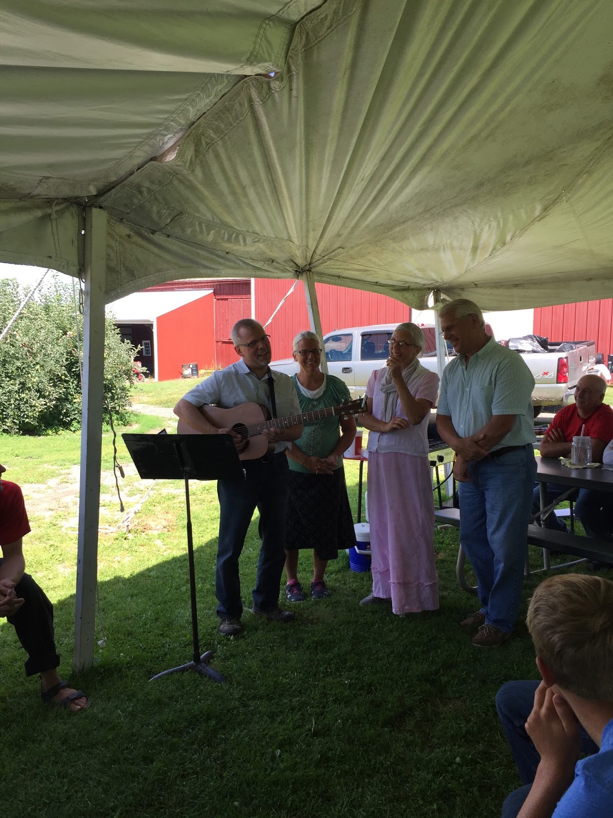 All gathered around at the end, joining hands, and singing “Blest Be the Tie That Binds”.