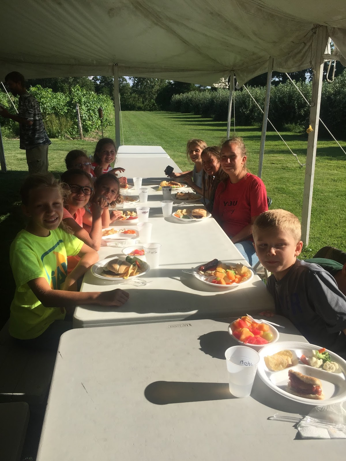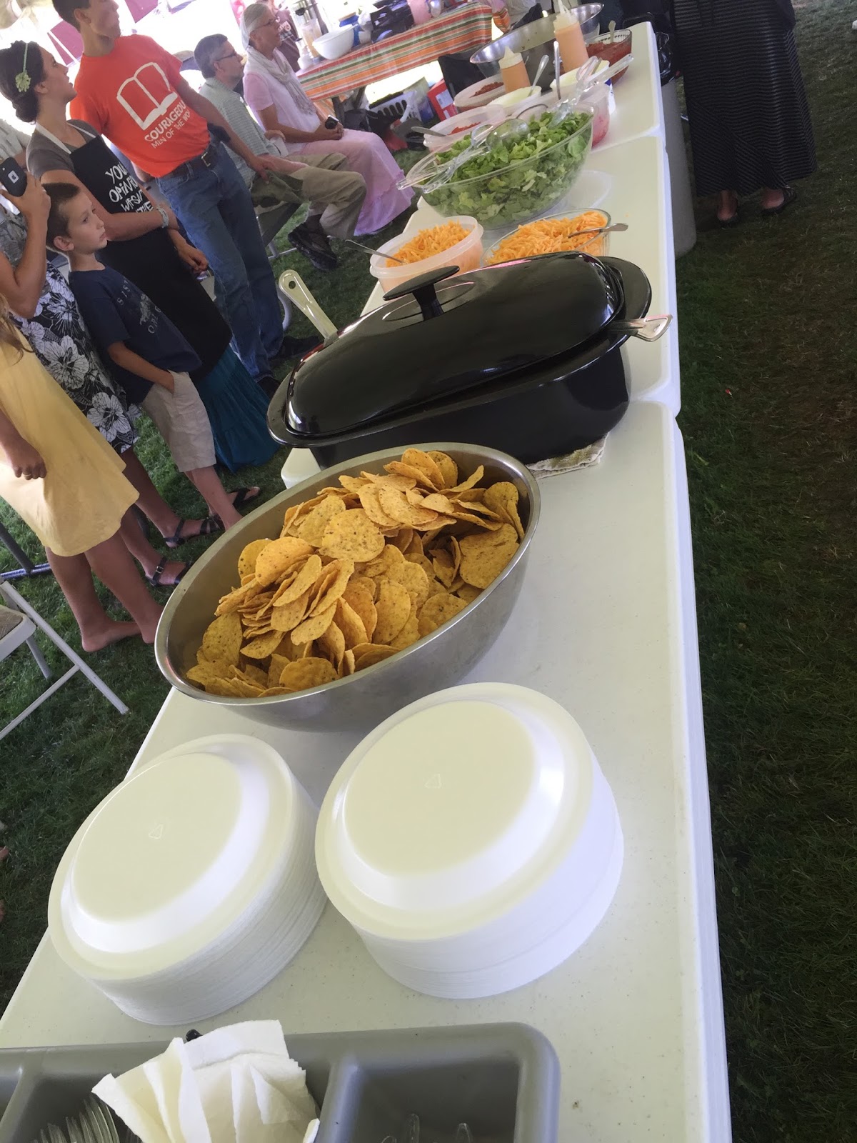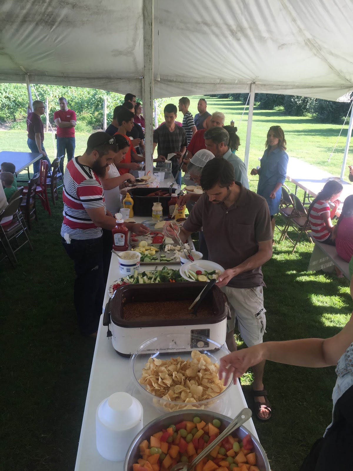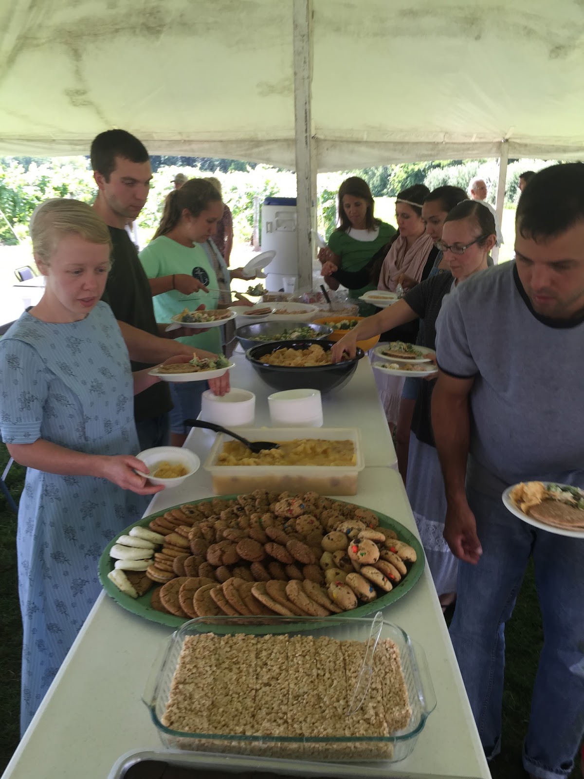 With so many people, there was lots of food to make + eat! The menu was planned out beforehand and the food bought/prepared, and each family took a turn preparing and cleaning up after one of the meals.