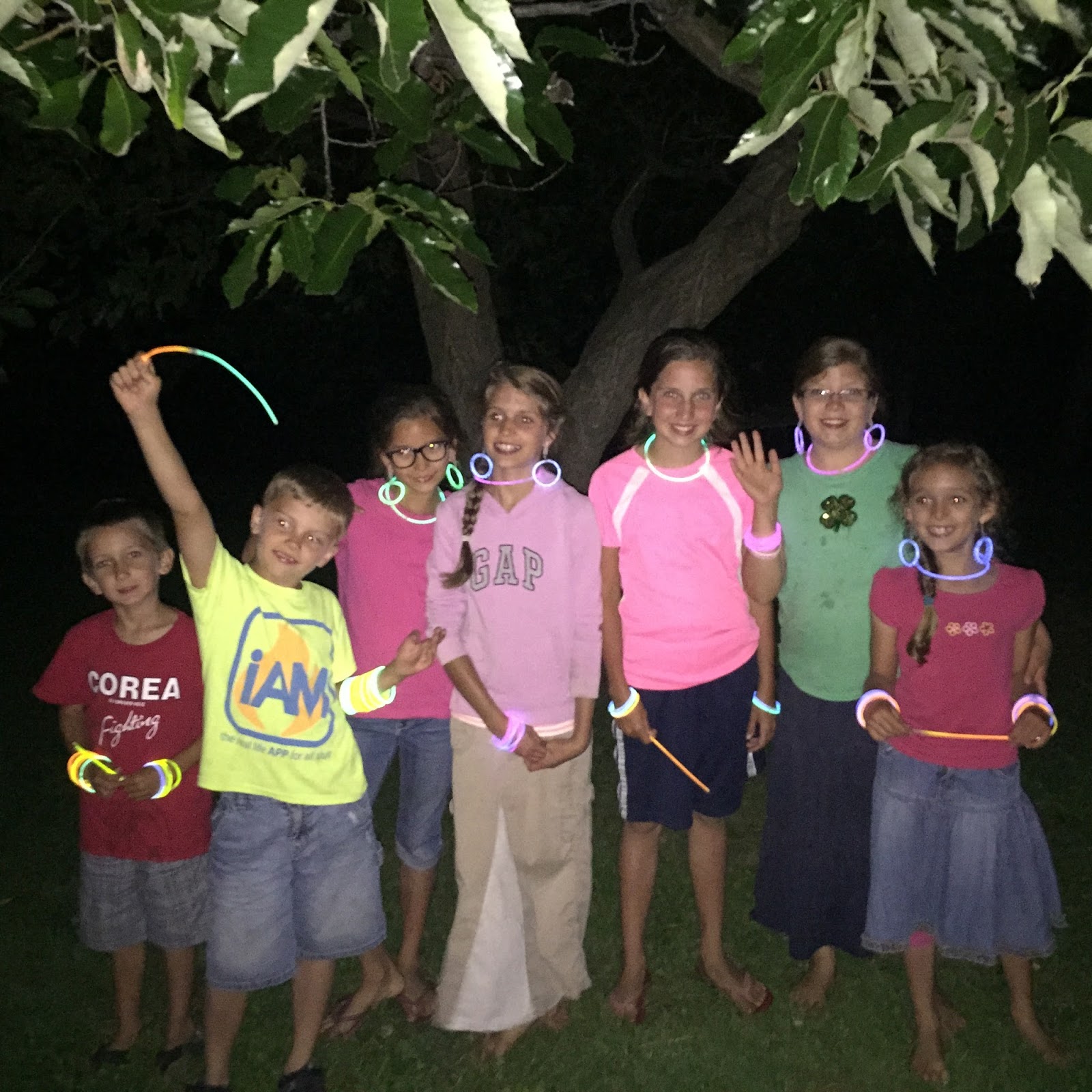 Only Aunt Esther would bring glow in the dark jewelry for the littles. She was the favorite aunt that night. =)