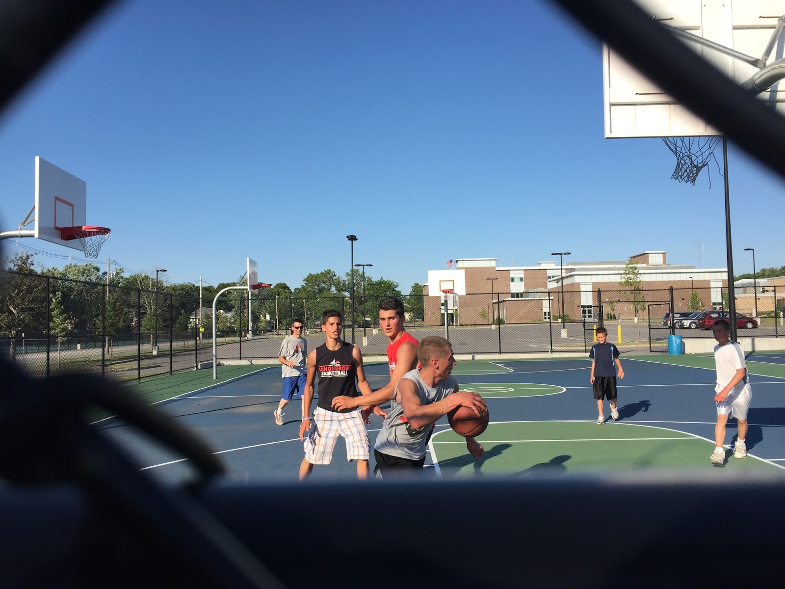 For Monday evening, we pulled in at a nearby park. The guys got in a couple great games of basketball, we celebrated Mitchell’s 24th birthday with a party in the bus, and we even got to watch fireworks from the bus windows!