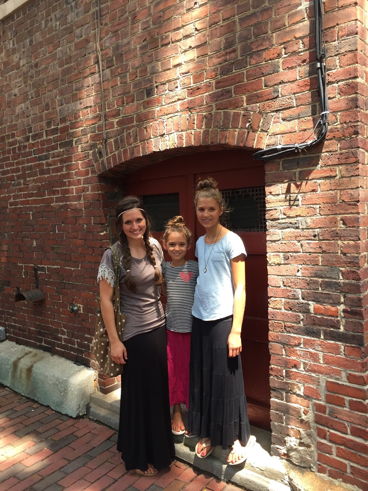Allison, Rebecca, and Liz pose outside the old brick church where a lantern was hung from the steeple on the night of Paul Revere’s famous midnight ride.