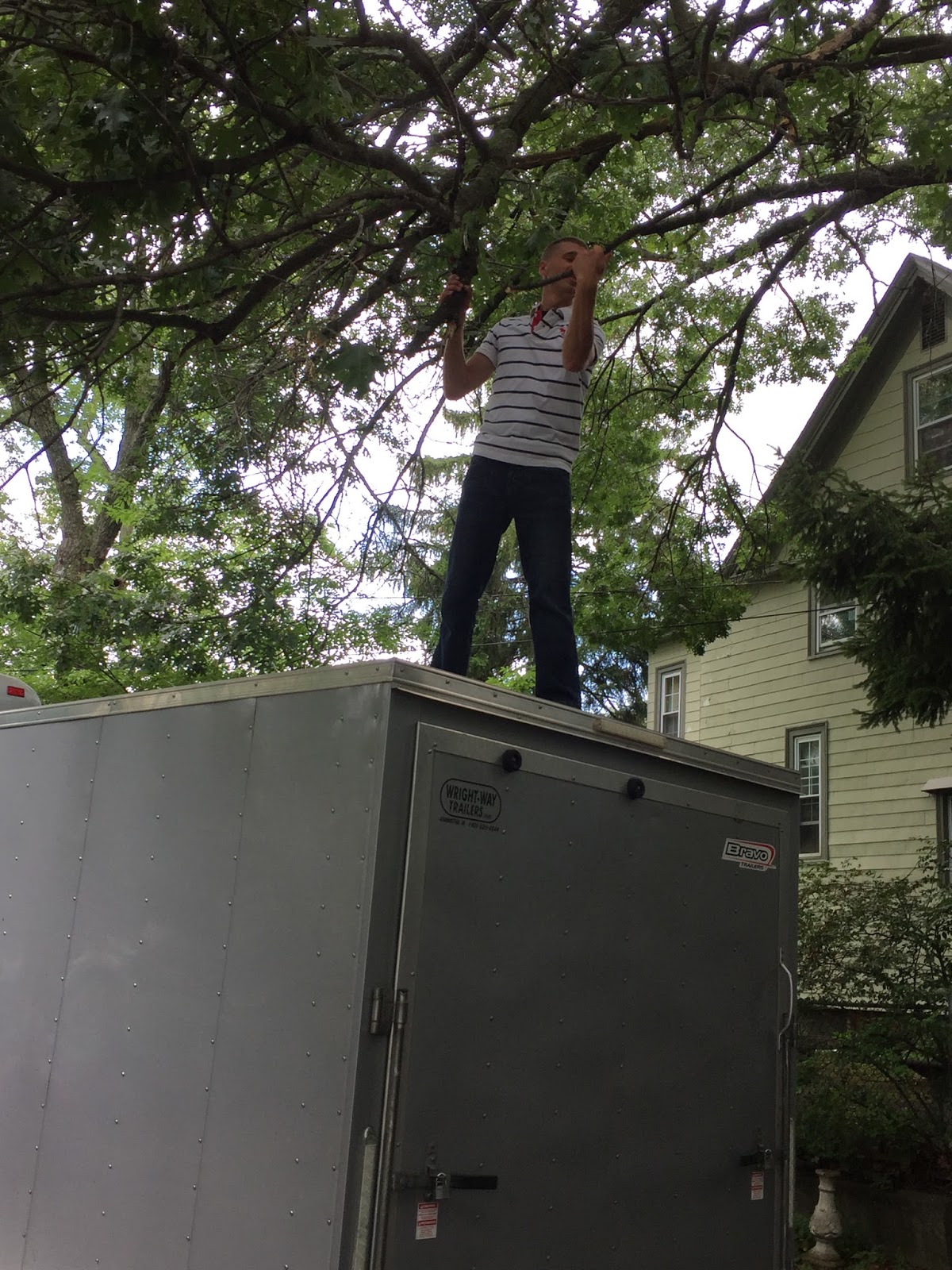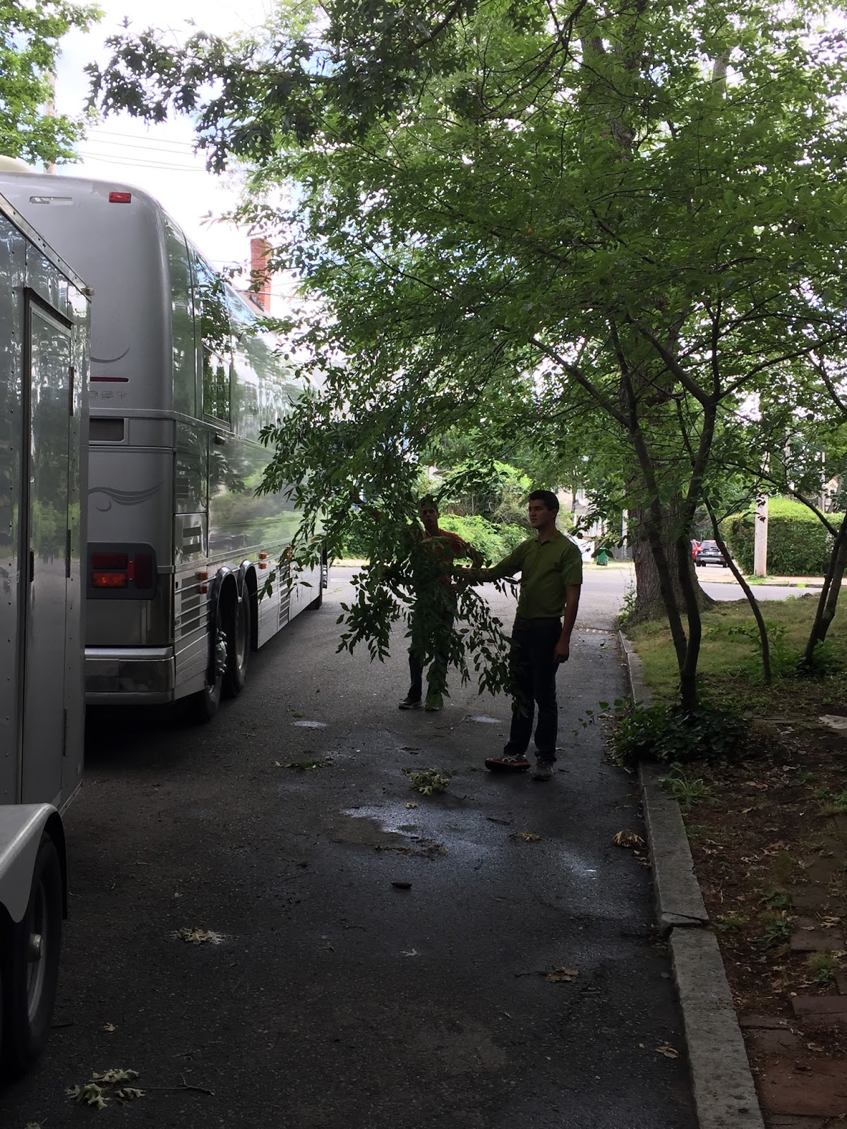 On to our concert location…in a suburb of Boston. There was literally no where at the church to park the bus, so we parked at one of the church members’ homes, a few miles away. Even this wasn’t technically their parking lot, but a shared lot/alley in between several houses. It took quite a bit of bending and trimming and maneuvering to get our rig in there!