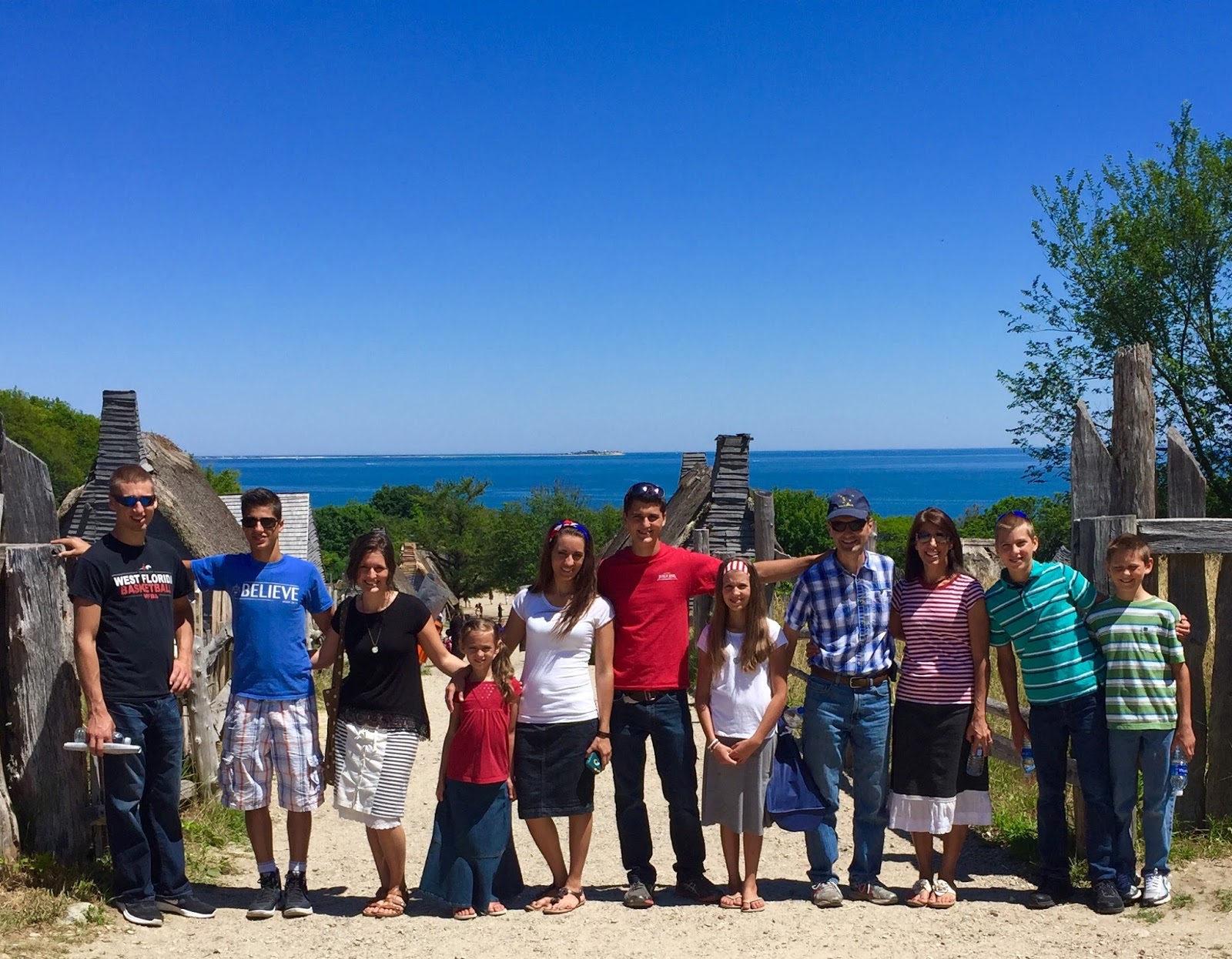We drove around the town of Plymouth for a while. We would not recommend doing this on July 4th in a 45ft bus WITH a trailer to boot! Traffic was crazy and we could barely make turns. A certain family member, who shall remain anonymous, made things even worse by sitting in the front passenger seat of the bus and waving and smiling at random people to make them think she knew them. (some of us were so embarrassed!) It was actually quite funny because apparently most people see a tour bus like ours and think it’s some big famous band. (which we’re not! but they don’t know that) So if the person in the front seat waves at them…it makes their day! This is what we discovered. We got lots of smiles and waves from that experience. =)