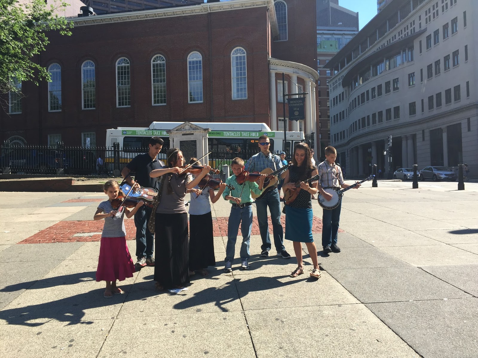 Wednesday morning found us up bright and early! We spent about an hour playing folk + gospel instrumental tunes on the Boston Commons. We also handed out our family cards (with the plan of salvation on the back) and invited people out to our concert that evening.