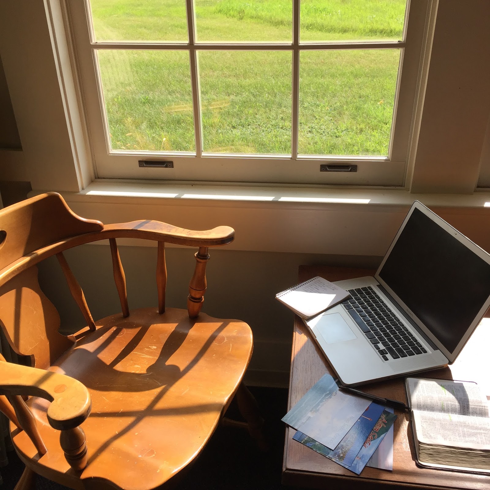 Whenever we are at churches throughout the day, we spread out and all set up our own individual little work stations all over the church. =)