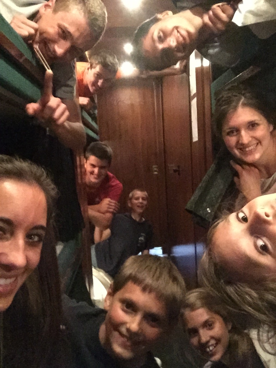 Sibling time is the best, even if it’s five minutes in a little side room before the concert. On this particular evening, some of us were hanging out in the above room that also happened to contain some very inviting big bouncy balls. Well, a certain brother (I don’t want to incriminate him, but he is tall + blond, and has a goatee:) was reaching up to play with the balls a bit. We were all intent upon watching him as another sibling walked in. All of a sudden, the certain brother hoarsely whisper-yelled “shut the DOOR!!!” He had realized-too late-that the newly-arrived sibling had left the door ajar, giving the whole audience a view of his bouncy-ball antics. Yes, life is never dull around here!