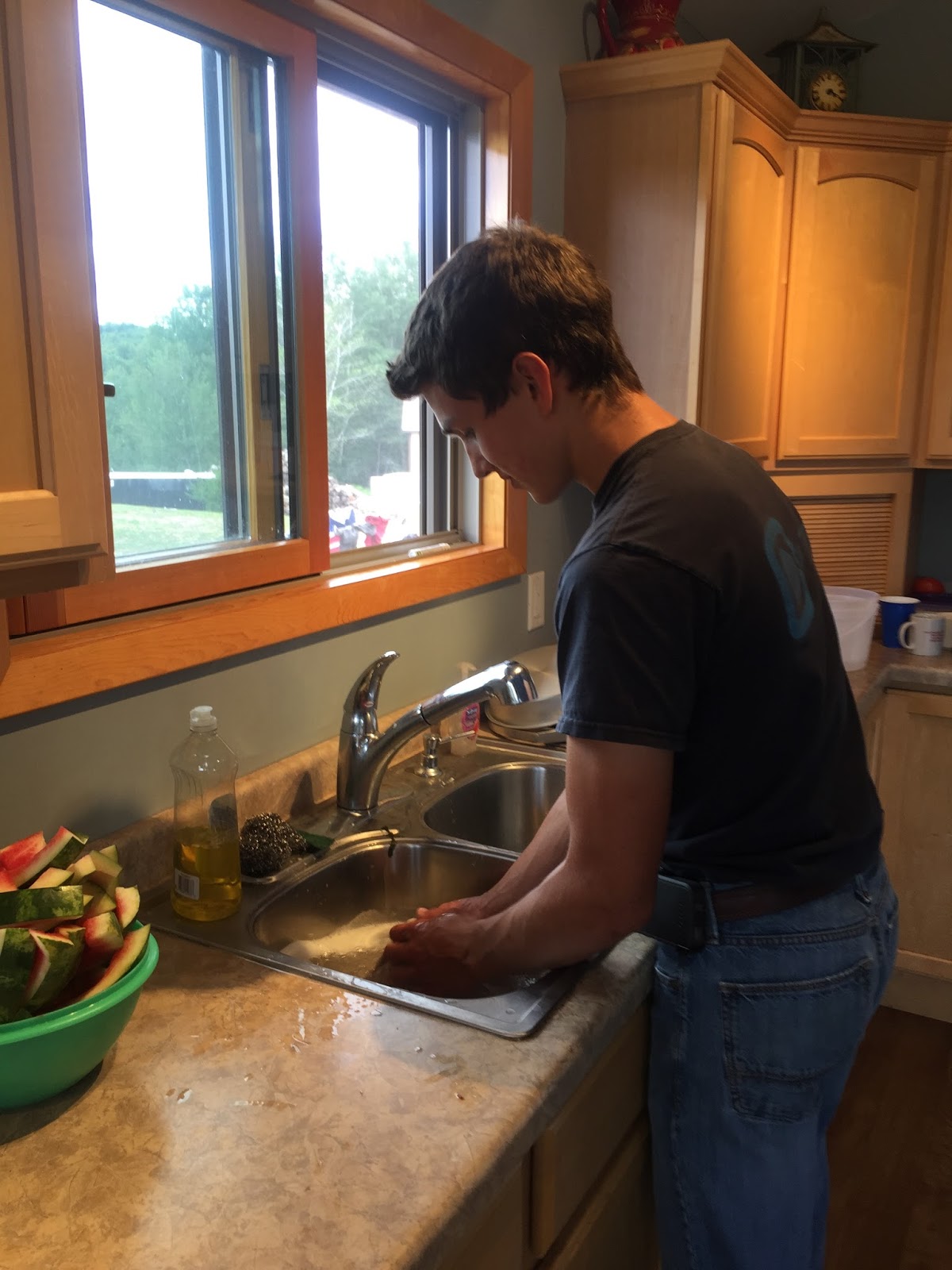 Our boys…they are the best. They just pitch in with whatever needs to be done. Here Carson is, washing dishes after a meal at some friends’ home.