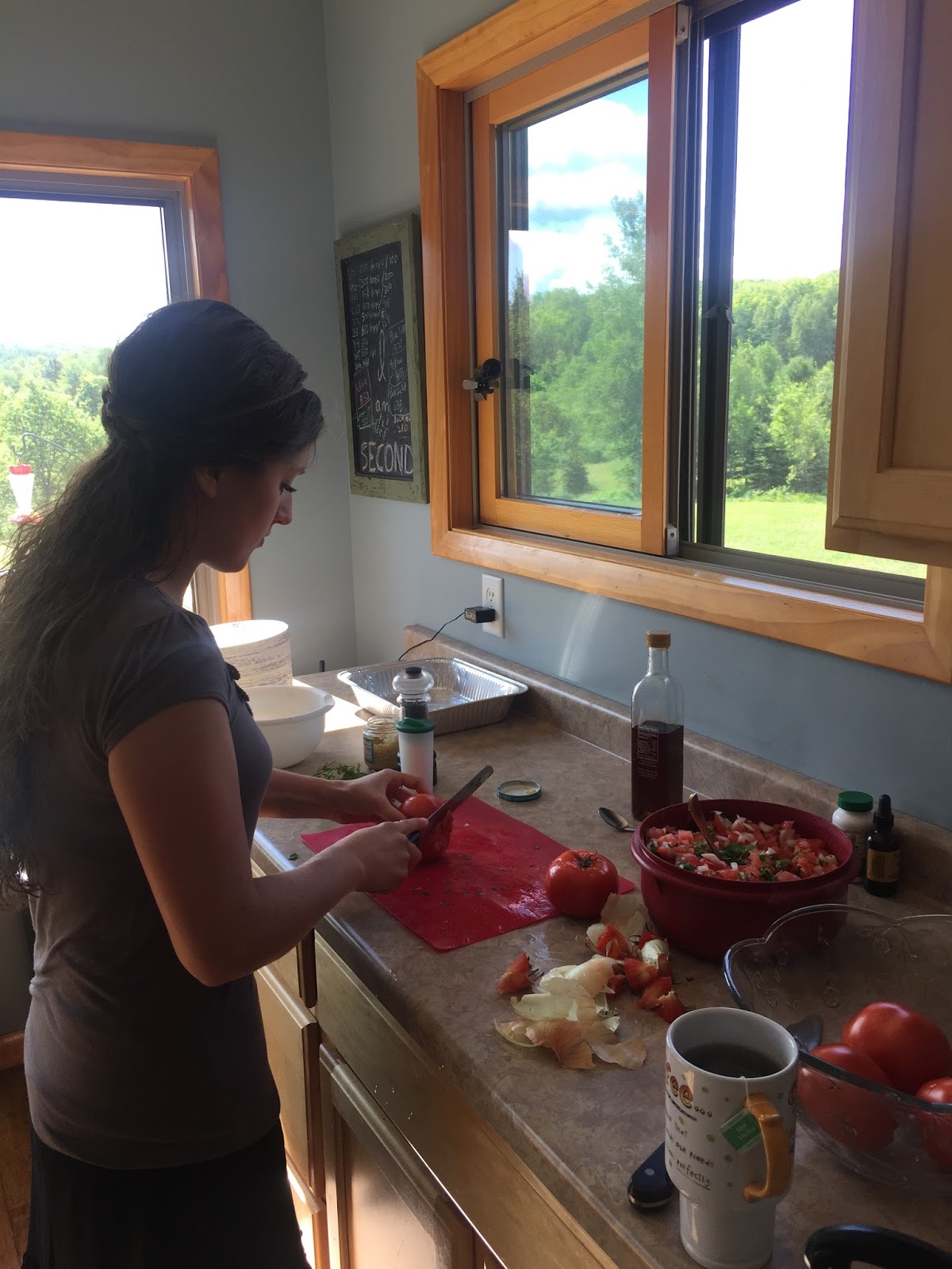 Allison whipping up her famous gluten-free, sugar-free, chocolate layer cake.