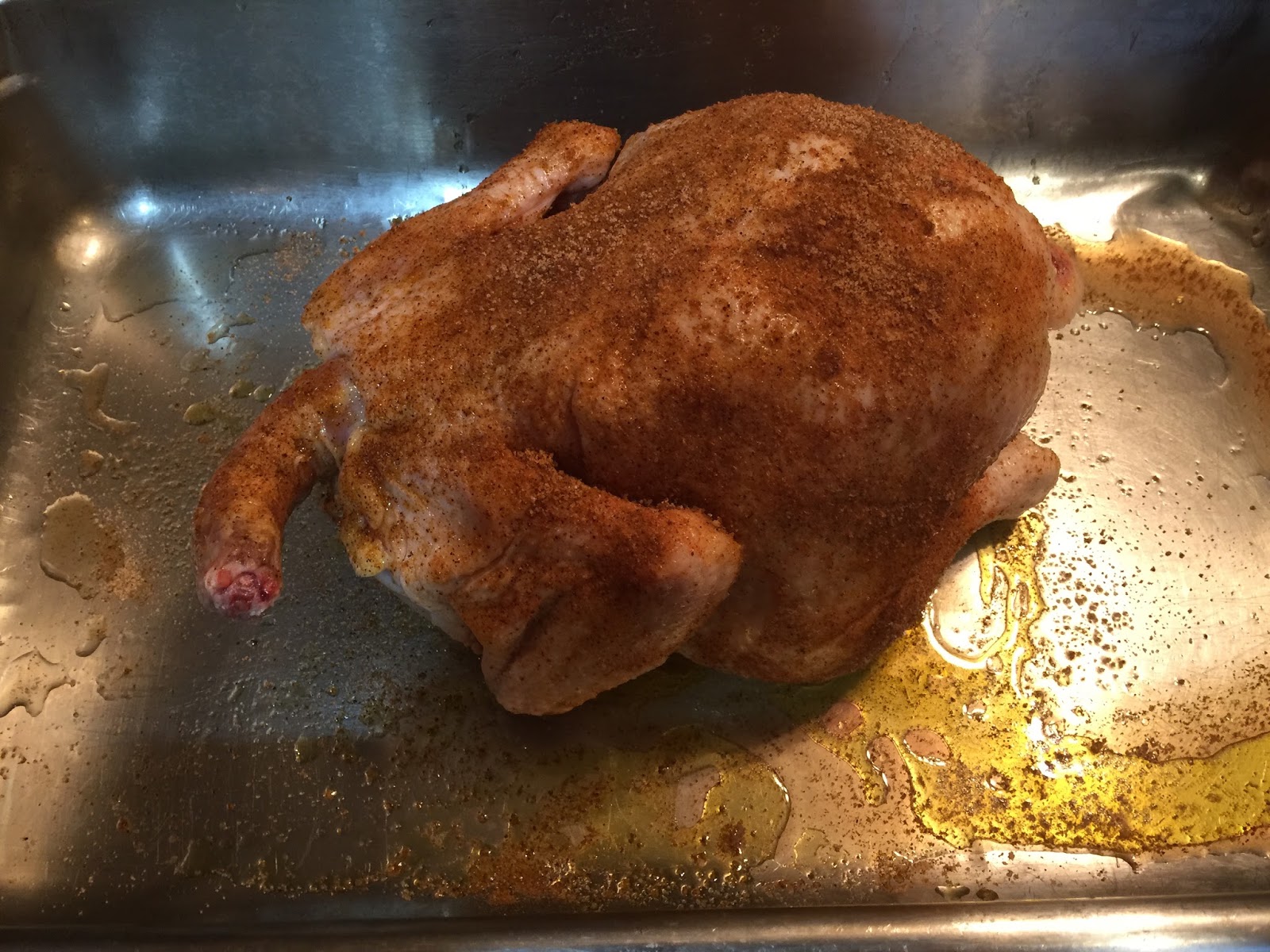 INSTRUCTIONS: In the morning, rinse the the chicken(s), place in a large roasting pan, rub with olive oil, and season with your choice of herbs and seasonings. (Our favorites are Cajun or Creole seasoning)