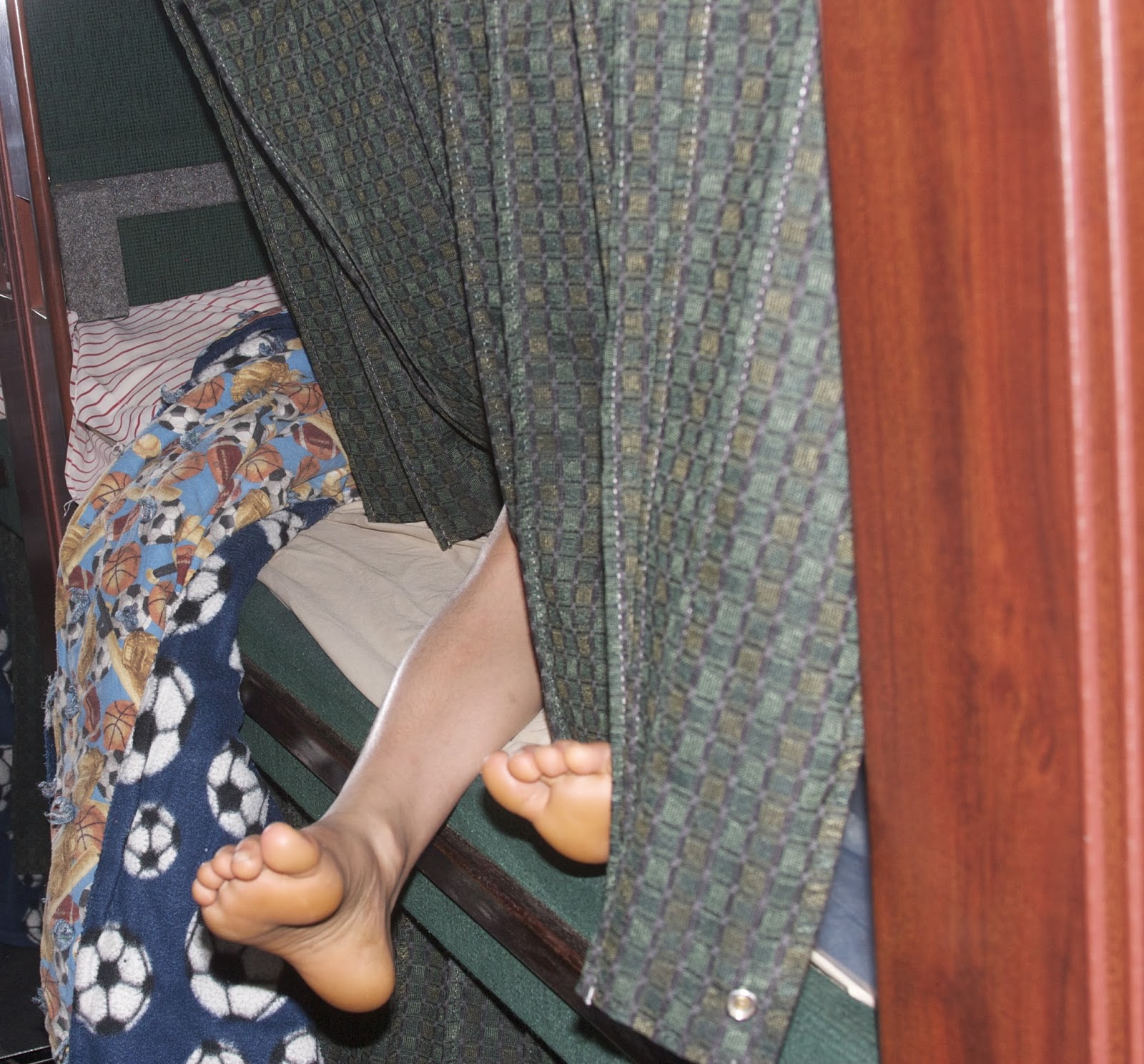 Little Miss Angel.:) The littles were running back and forth from the bus to the house and around in circles (slight exagaration, maybe?) longgg after their normal bedtime. I pleaded, “Can’t they please be put to bed?” You see….when you are trying to get all the last minute things done or packed, having hyper-about-leaving, 4-hours-past-their-bedtime-tired children running wild is, um, complicated. So they finally crawled jumped into their beds about 1:15pm and dozed off attempted to settle down.:)