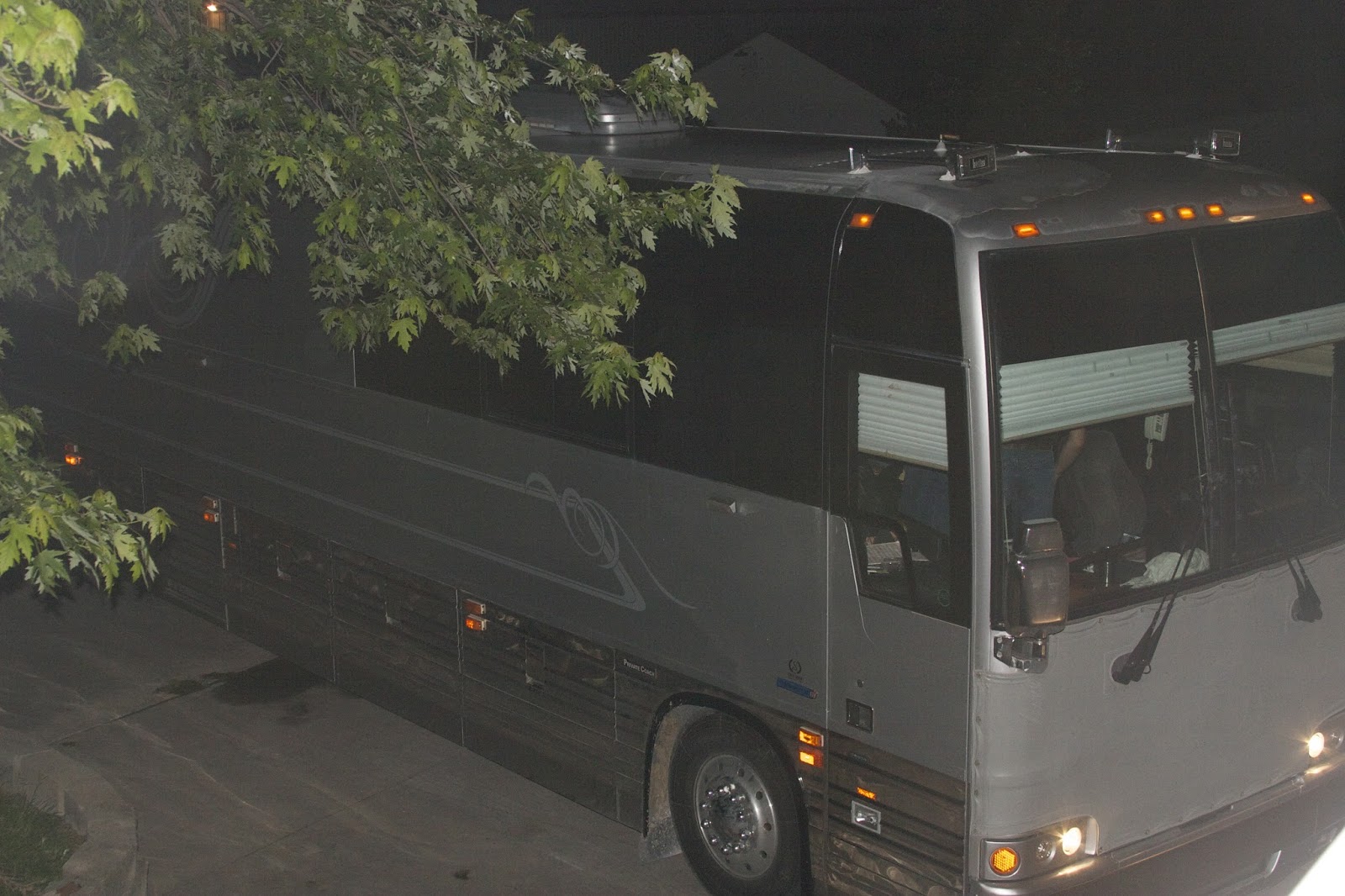 This photo was taken when we started to pull out, but had to wait in the driveway as people ran inside to grab forgotten items.