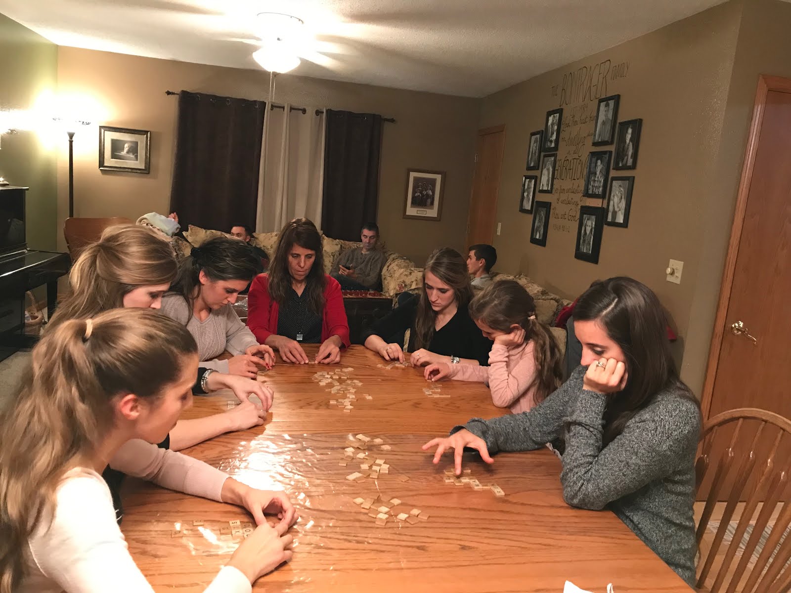 On Sunday, we met together for another Thanksgiving feast, this one at the Bontrager farm. The blustering wind and flurry snow contrasted with the warmth indoors.